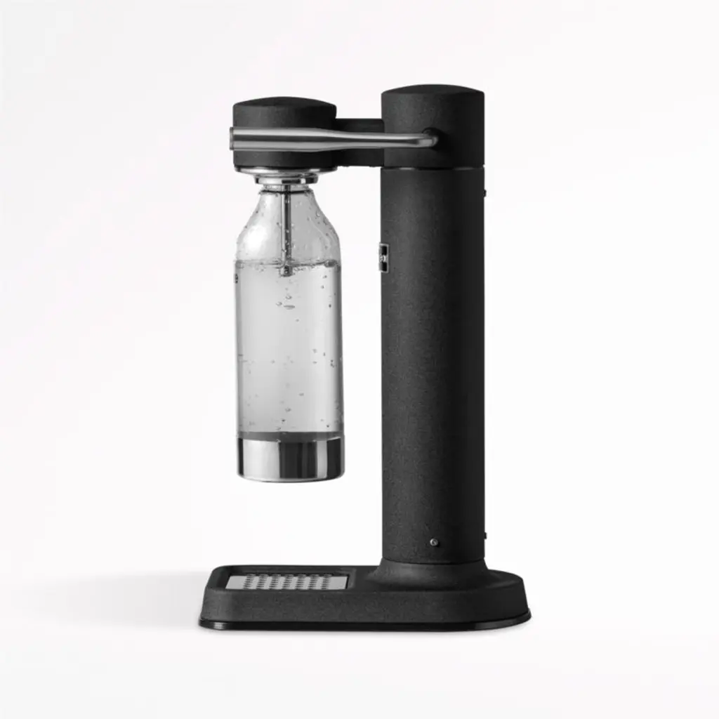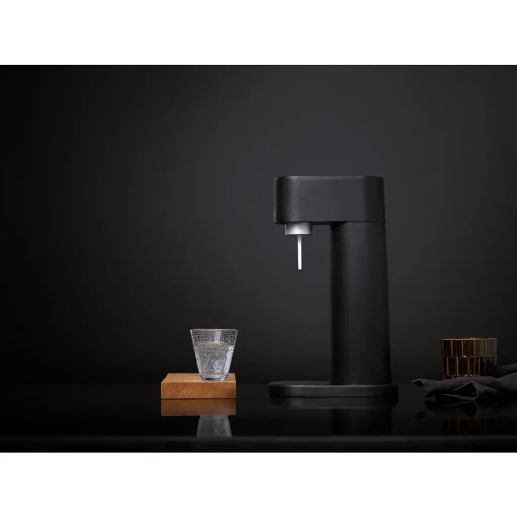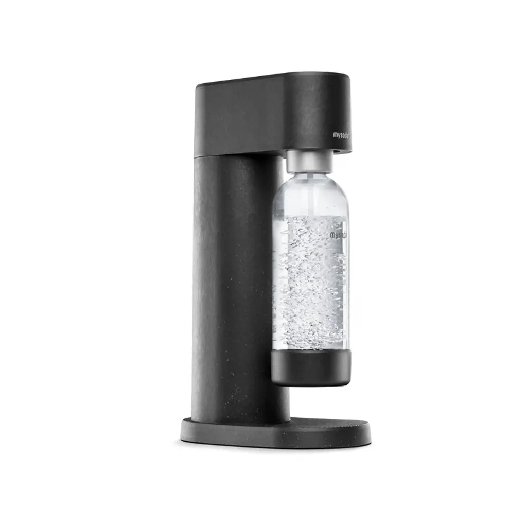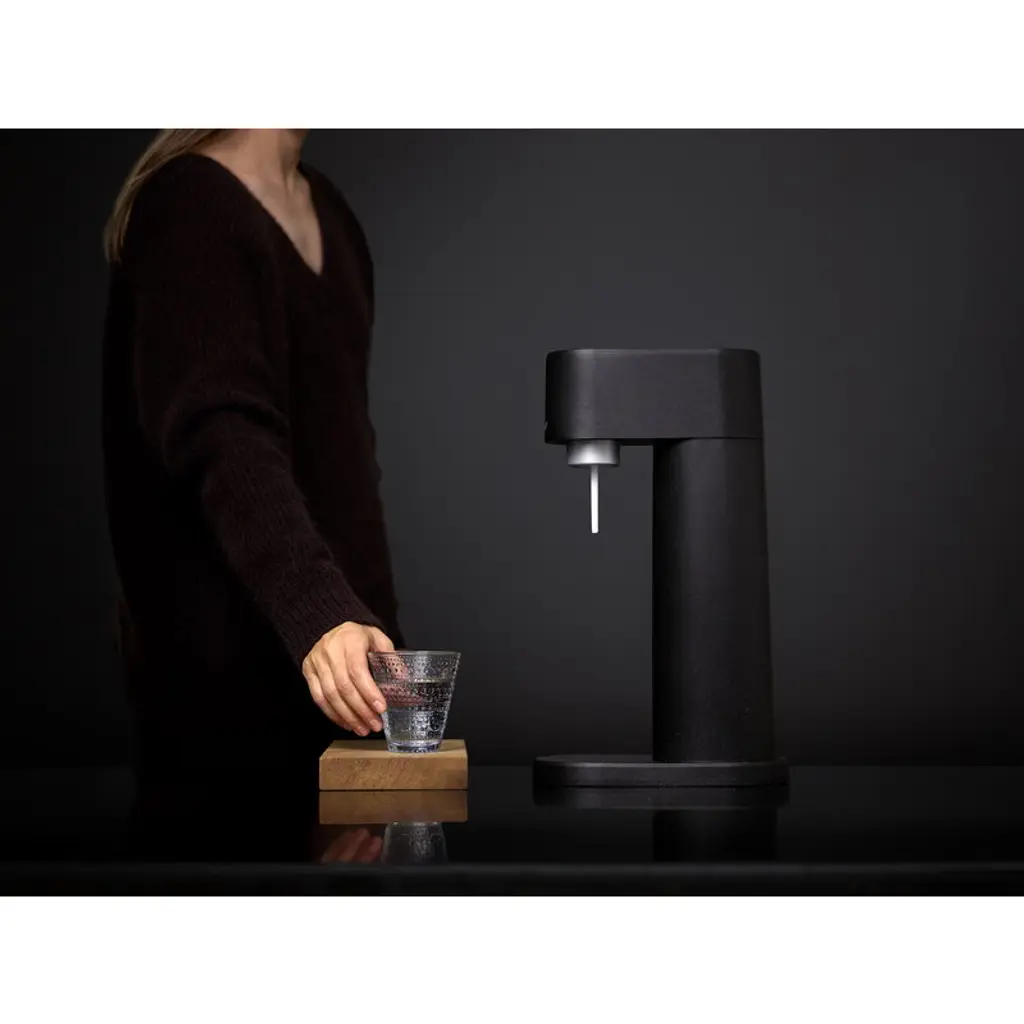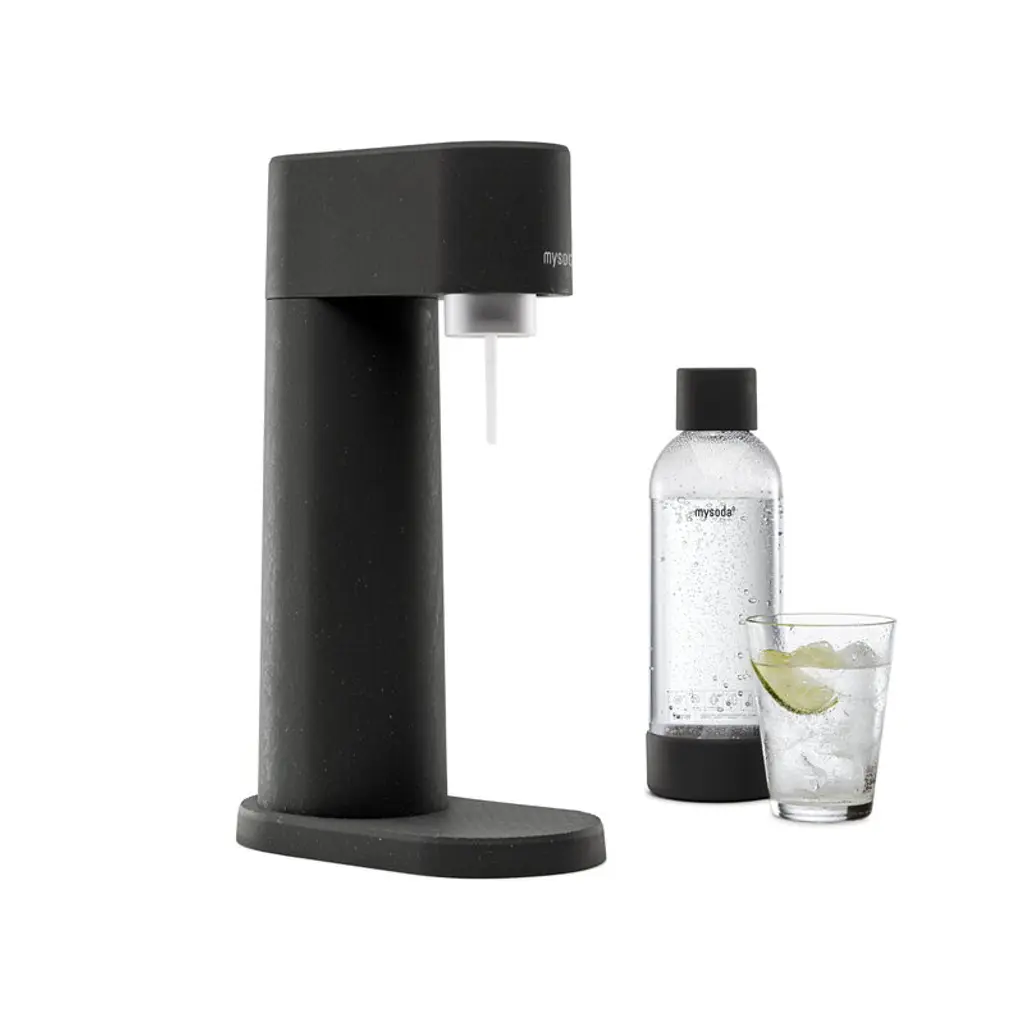 The Mysoda Woody sparkling water maker is an innovative device made from renewable raw materials. Woody is very quiet, easy to use, and works completely without electricity – it will easily find its place in both home kitchens and various other settings such as office spaces or even cabins or cottages with no electrical power. Created in collaboration with Pentagon Design, Woody is named after its innovative material: the device is made from an ecological biocomposite, the raw materials of which are obtained from side streams and residues of the forest industry; no additional harvesting is needed. The wood-based material gives the device a charming, natural look and texture, making it not only easy to use but also easy on the eyes. In 2021, Woody was recognized with the prestigious Red Dot Design Award and the iF gold award. The sparkling water maker comes with a reusable one-liter drinking bottle. Please note that the water bottles used in Mysoda sparkling water makers have an expiration date. The plastic bottles are designed to withstand high pressure, but it is characteristic for plastic to harden over time. When it becomes too hard, it can no longer expand when water is carbonated. For this reason, all Mysoda bottles have an expiry date and should no longer be used after it. Extra bottles are available separately. Please note that Woody does not come with a carbon dioxide cylinder, but the device is compatible with standard carbon dioxide cylinders.