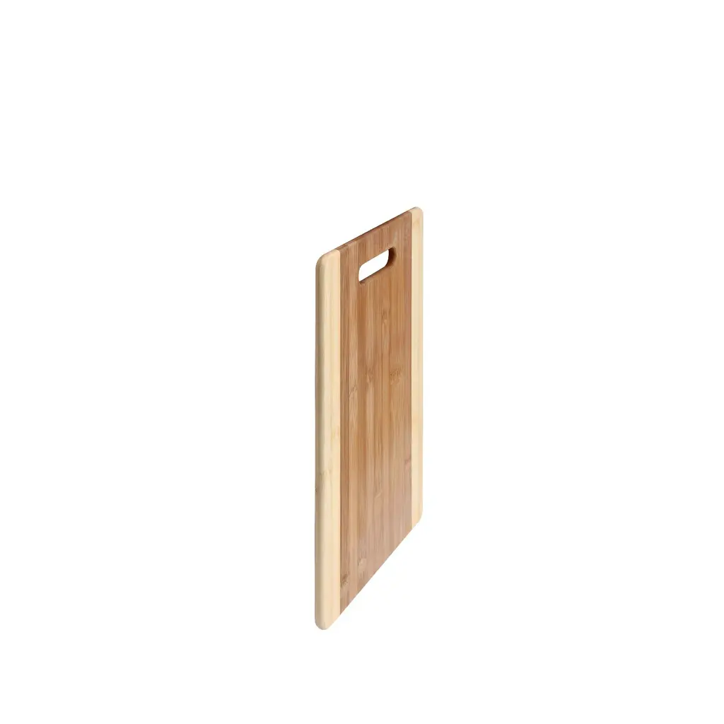 This bamboo cutting board is the perfect addition to your contemporary kitchen. Bamboo is eco-friendly and naturally anti-microbial to keep you and your loved ones safe and healthy. To clean, simply rinse with hot water and soap then let air dry. Available in three different sizes to suit your kitchen needs. Details; Cutting boardDurable bambooNatural anti-microbialEco-friendlyHand washDimensions: Small: 12.6 inches long x 8.6 inches wide x 3/8 inches highMedium: 15 inches long x 10 inches wide x 3/8 inches highLarge: 18 inches long x 12 inches wide x 3/8 inches high
