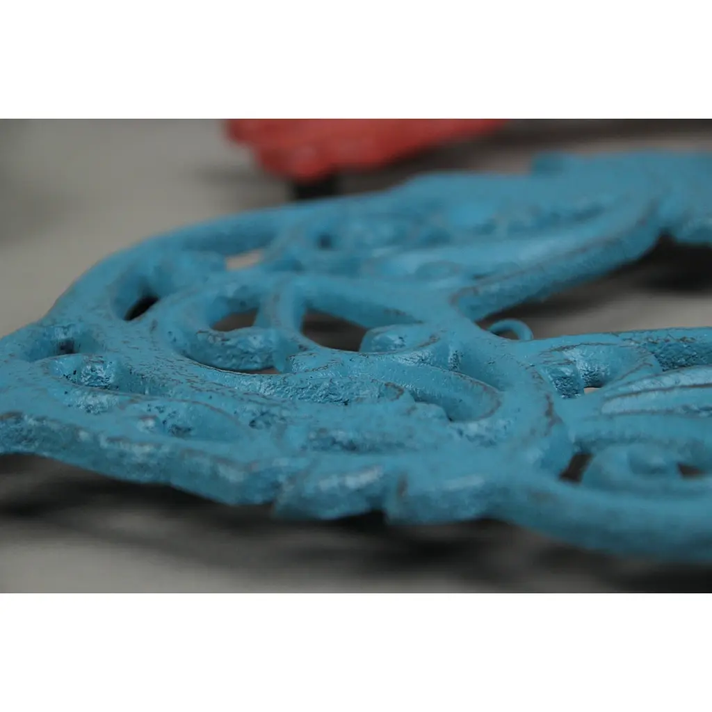 This multicolor trivet set from Zeckos is perfect for the kitchen wall, counter or dining table to place a hot pan on and save your surface. Each cast iron trivet features a colorful enamel painted finish. The rooster measures approximately 9.25 inches long, 9 inches wide and 0.5 inches high. The pig measures approximately 8.75 inches long, 6.25 inches wide, 0.5 inches high, and the cow is approximately 9.25 inches long, 6.75 inches wide and 0.5 inches high.