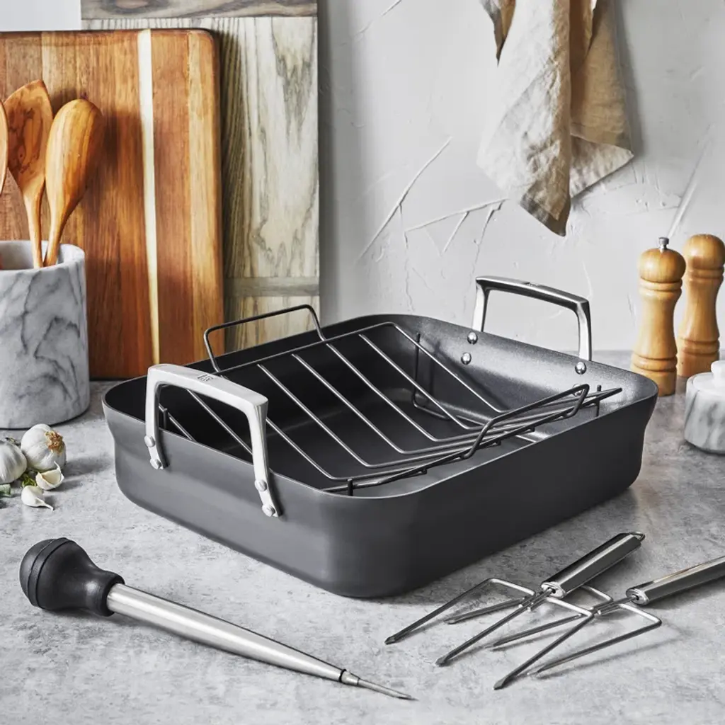 Zwilling Motion Hard Anodized 16 X 14-Inch Aluminum Nonstick Roaster Pan W/ Rack & Tools