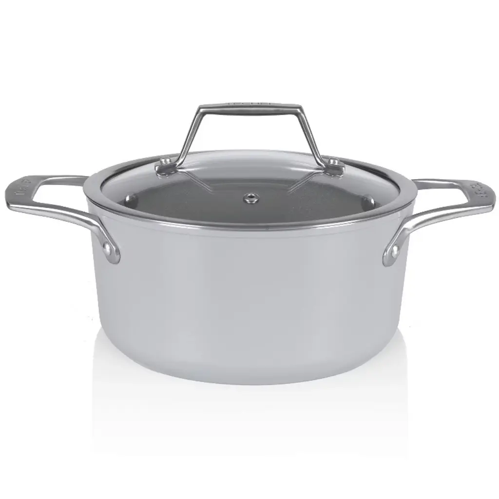 Say goodbye to sticky situations with this non-stick Dutch oven, designed to make cooking and cleaning a breeze. Crafted from solid aluminum, it's PFOA-free and compatible with gas, electric smooth top, and glass stoves. The metal handle ensures a secure grip while the oven-safe design can handle temperatures up to 450°F. Plus, it's refrigerator safe for easy leftovers storage. To keep it looking and performing its best, we recommend hand washing only. Ideal for both home chefs and culinary pros, this versatile Dutch oven is a must-have in any kitchen.