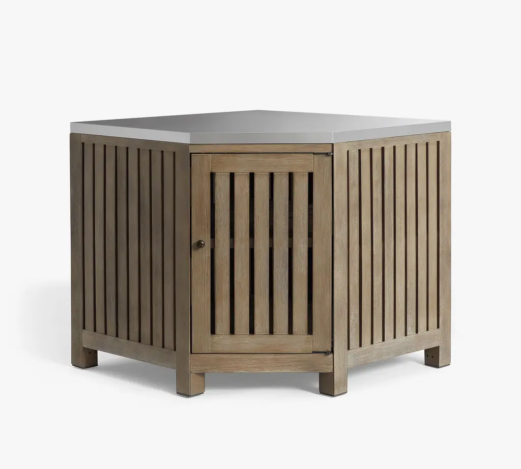 Design the perfect entertaining area that looks and feels custom-made with our Abbott Outdoor Kitchen, a versatile modular system that ensures that you get the perfect arrangement for you space. This corner cabinet is a smart use of under-utilized space that creates even more storage and configuration options. The full suite offers space for a refrigerator and grill from our sister brand Williams Sonoma, so you can bring everything but the kitchen sink outside.