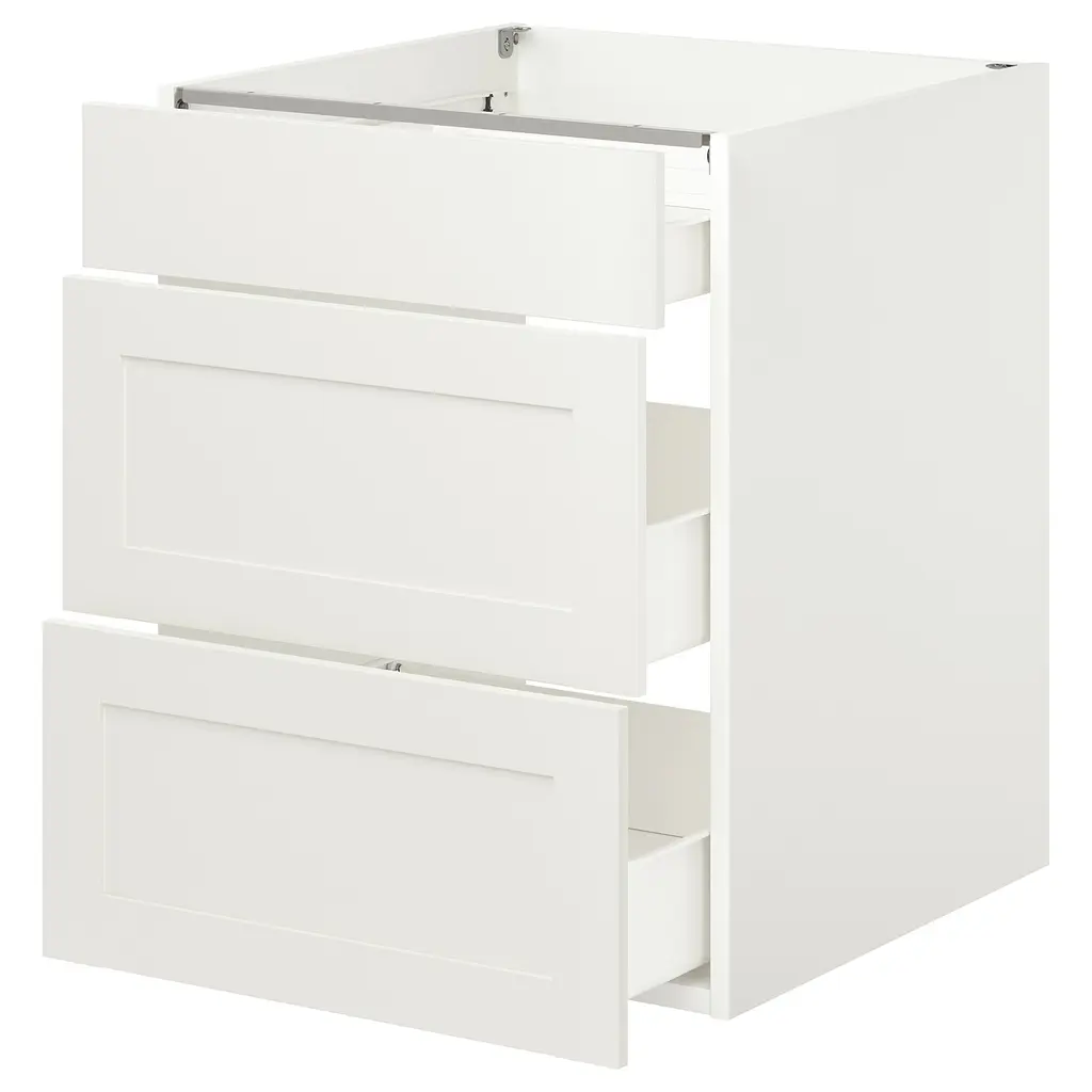 ENHET Base cabinet with 3 drawers - white/white frame 24x24 3/4x30 ". A white surface with a wide frame is like an empty canvas where your choice of accessories and accent colors sets the style. Modern or classic - you decide. ¾ drawer extension for good overview and easy access to the content.