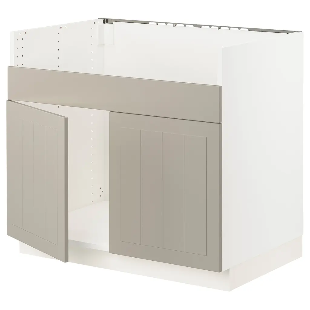 SEKTION Base cab f HAVSEN double bowl sink - white/Stensund beige 36x24x30 ". Sturdy frame construction, ¾" thick. Snap-on hinges can be mounted onto the door without screws, and you can easily remove the door for cleaning. The hinge is adjustable in height, depth and width.