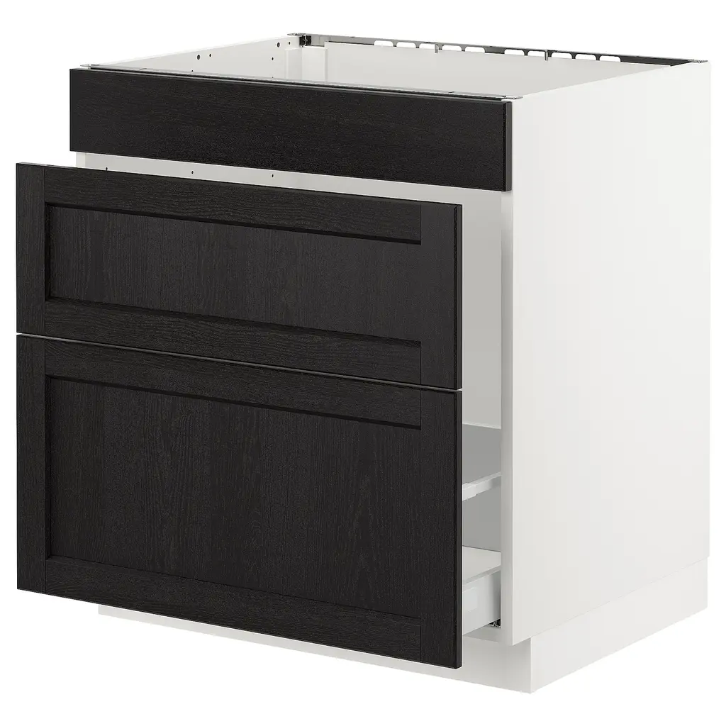 SEKTION Base cabinet f/sink & waste sorting - white Maximera/Lerhyttan black stained 30x24x30 ". MAXIMERA drawer is a smooth-running, full-extension drawer with built-in dampers so that it closes slowly, softly, and quietly. Sturdy frame construction, ¾" thick. Requires a knob or a handle