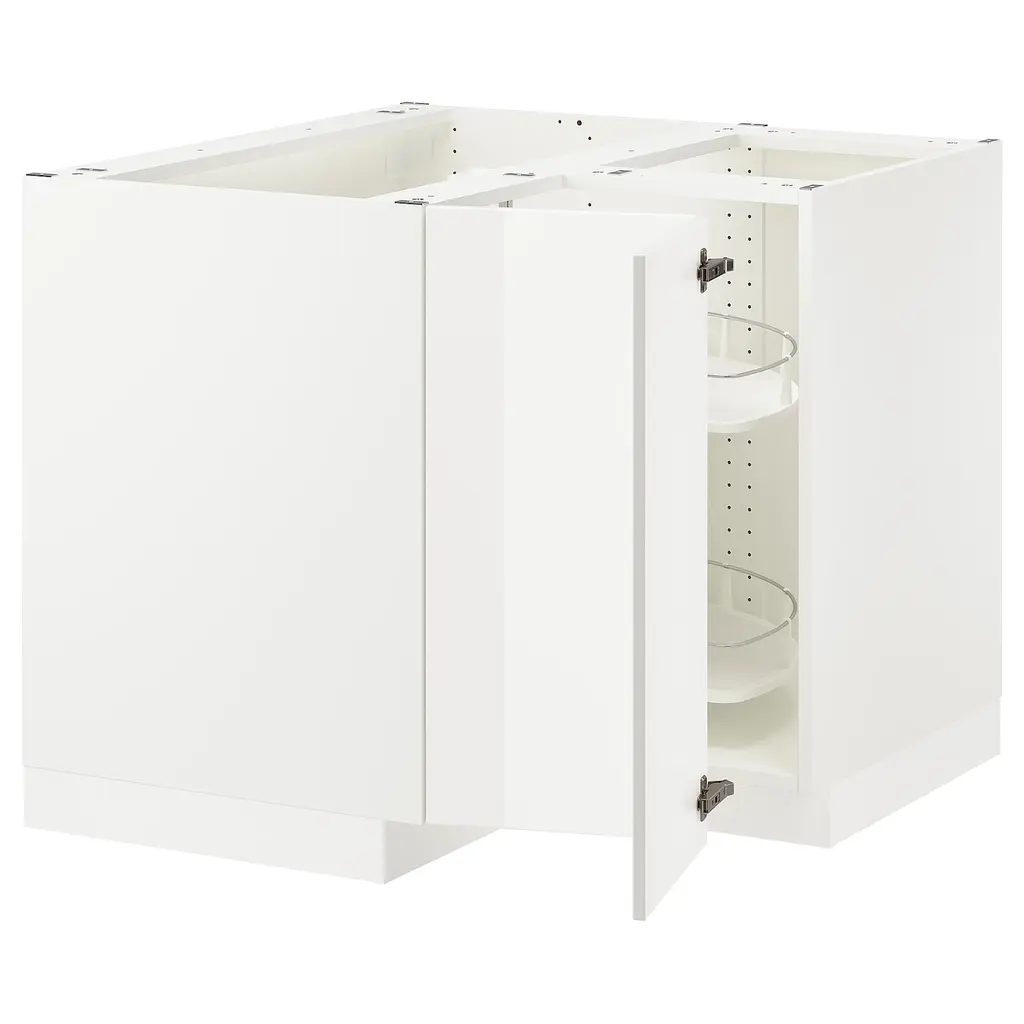 SEKTION Corner base cabinet with carousel - white/Axstad matt white 38x24x30 ". The shelves can be moved vertically and rotated to make it easier for you to access what you need. Ideal for storing things like pots, pie plates, and dry goods. Sturdy frame construction, ¾" thick.