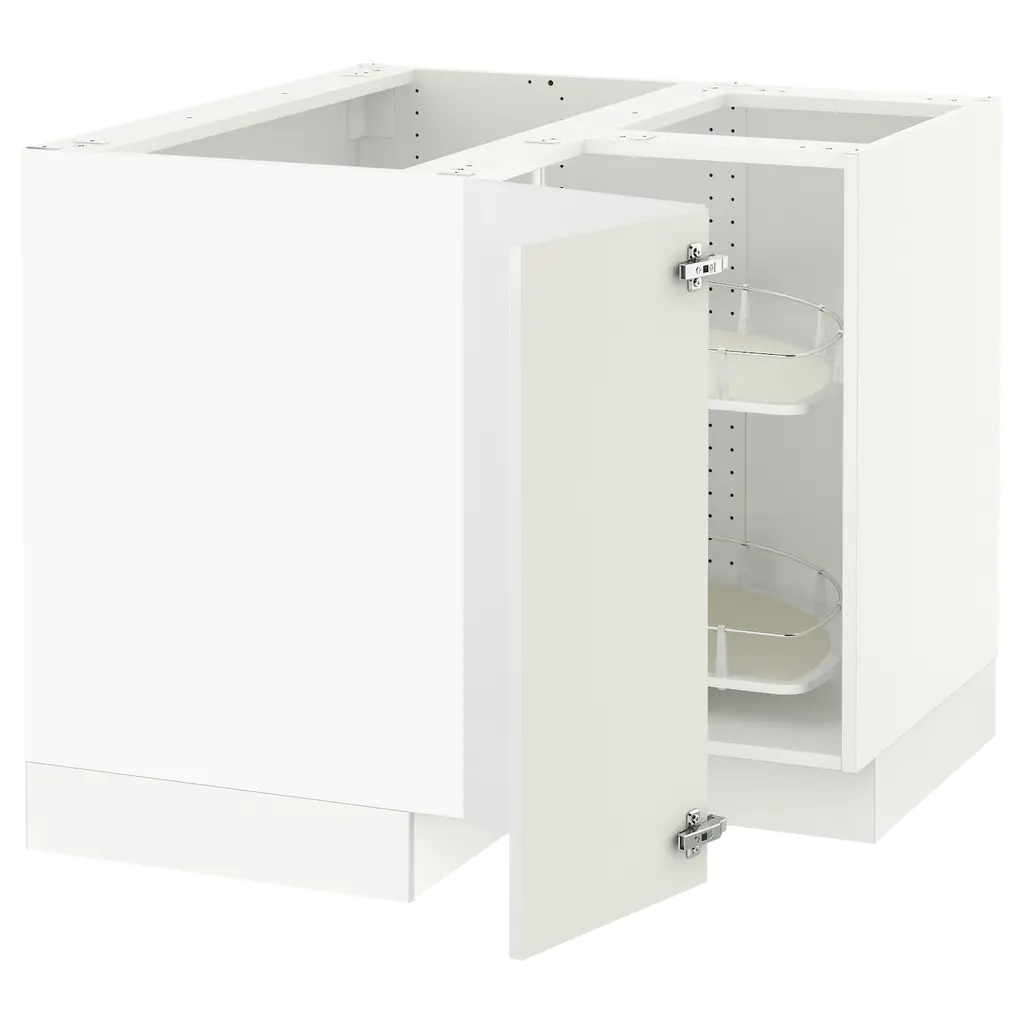 SEKTION Corner base cabinet with carousel - white/Ringhult white 38x24x30 ". The shelves can be moved vertically and rotated to make it easier for you to access what you need. Ideal for storing things like pots, pie plates, and dry goods. You can choose to mount the door on the right or left side.
