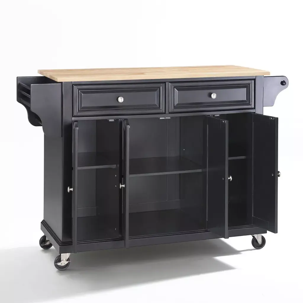 Full Size Wood Top Kitchen Cart Black - Crosley: Mobile Storage, 3 Cabinets, Spice Rack