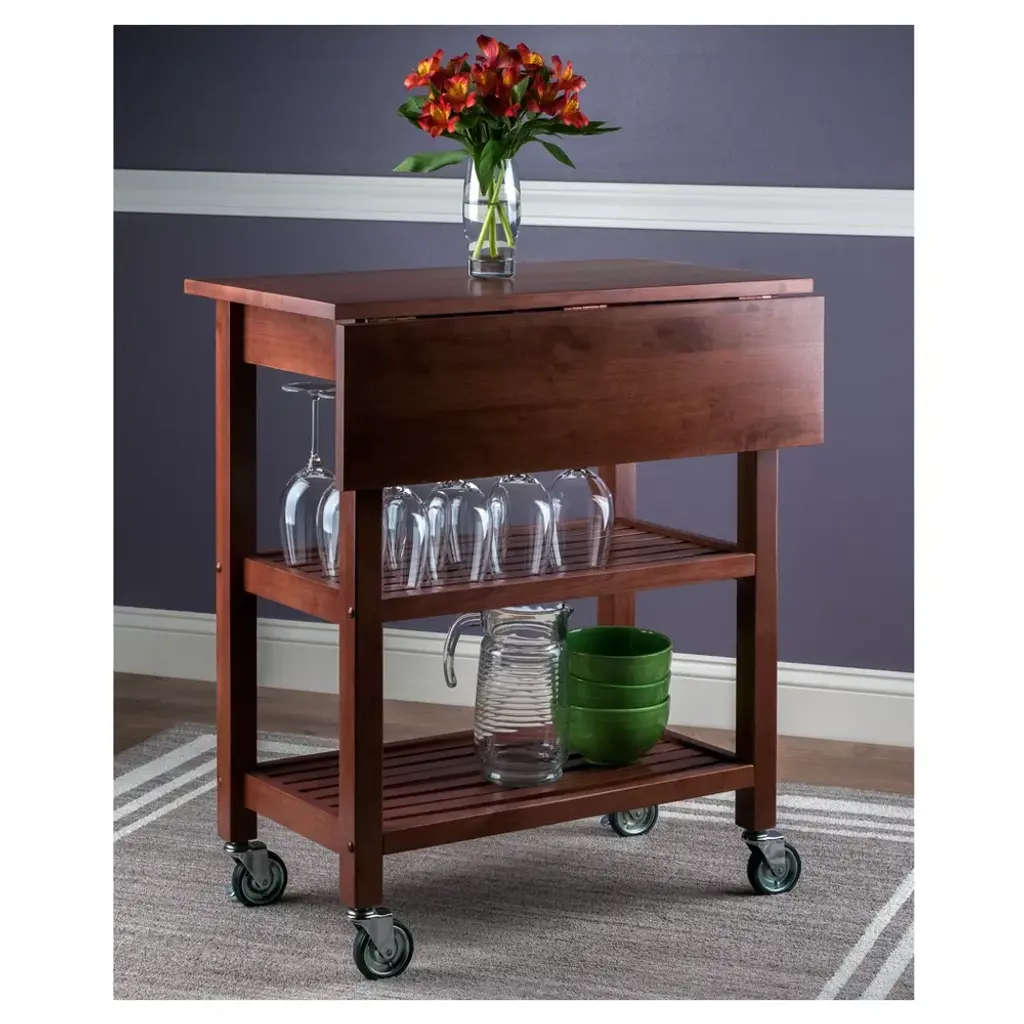 Jonathan Kitchen Cart Walnut - Winsome: Rolling Island With Storage, Wood Composite Surface