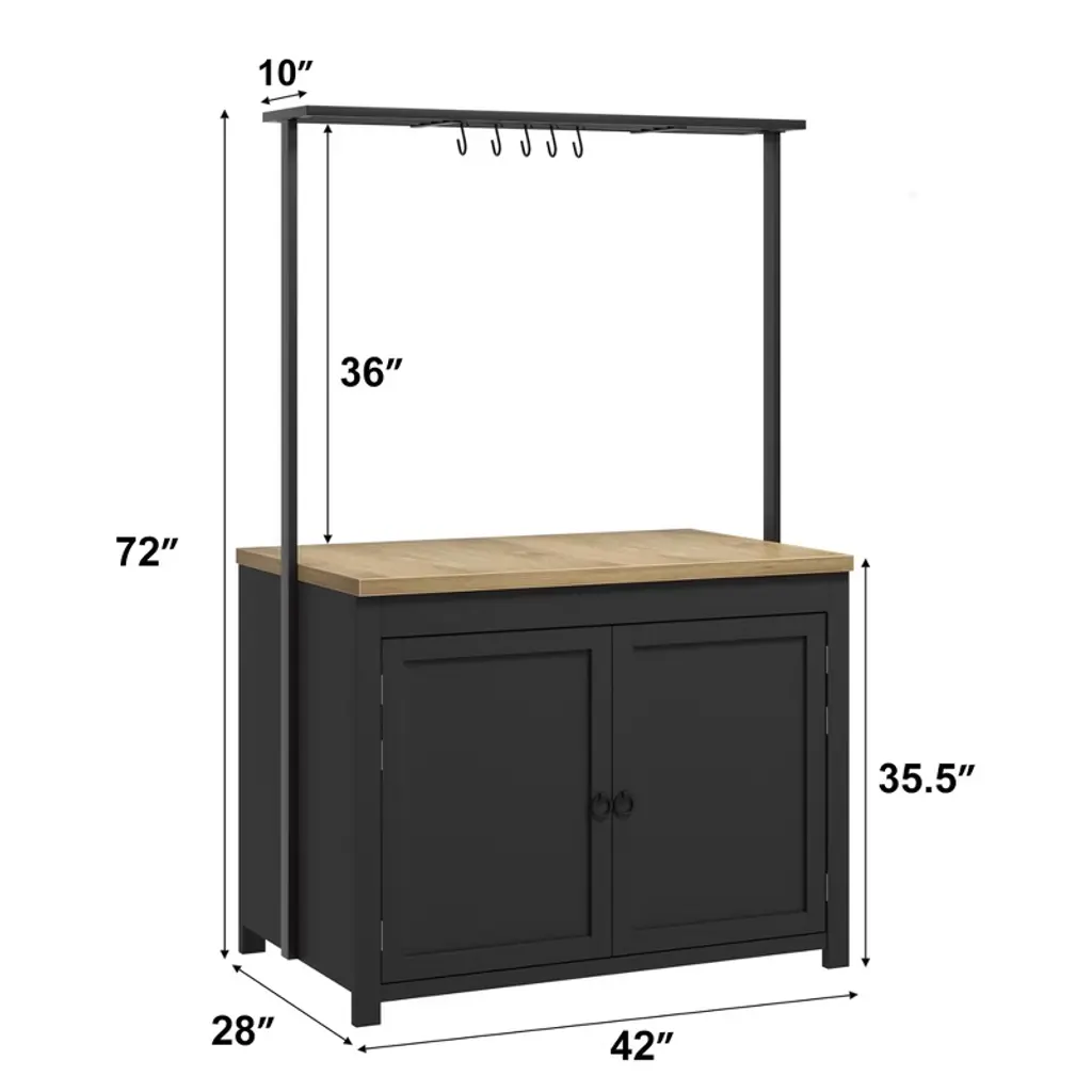 Upgrade your small-space living with this 42" Heavy-Duty Kitchen Island. Featuring a 1.2" thick solid wood countertop (400 lb capacity), it’s perfect for meal prep, dining, or holding heavy appliances. With 3-tier shelves and 5 hooks, you’ll enjoy smart storage for cookware, utensils, and spices, keeping your kitchen clutter-free. Its versatile design doubles as a prep station, breakfast bar, or serving cart—ideal for apartments and open layouts. Plus, the space-saving stool storage adds function without sacrificing style.