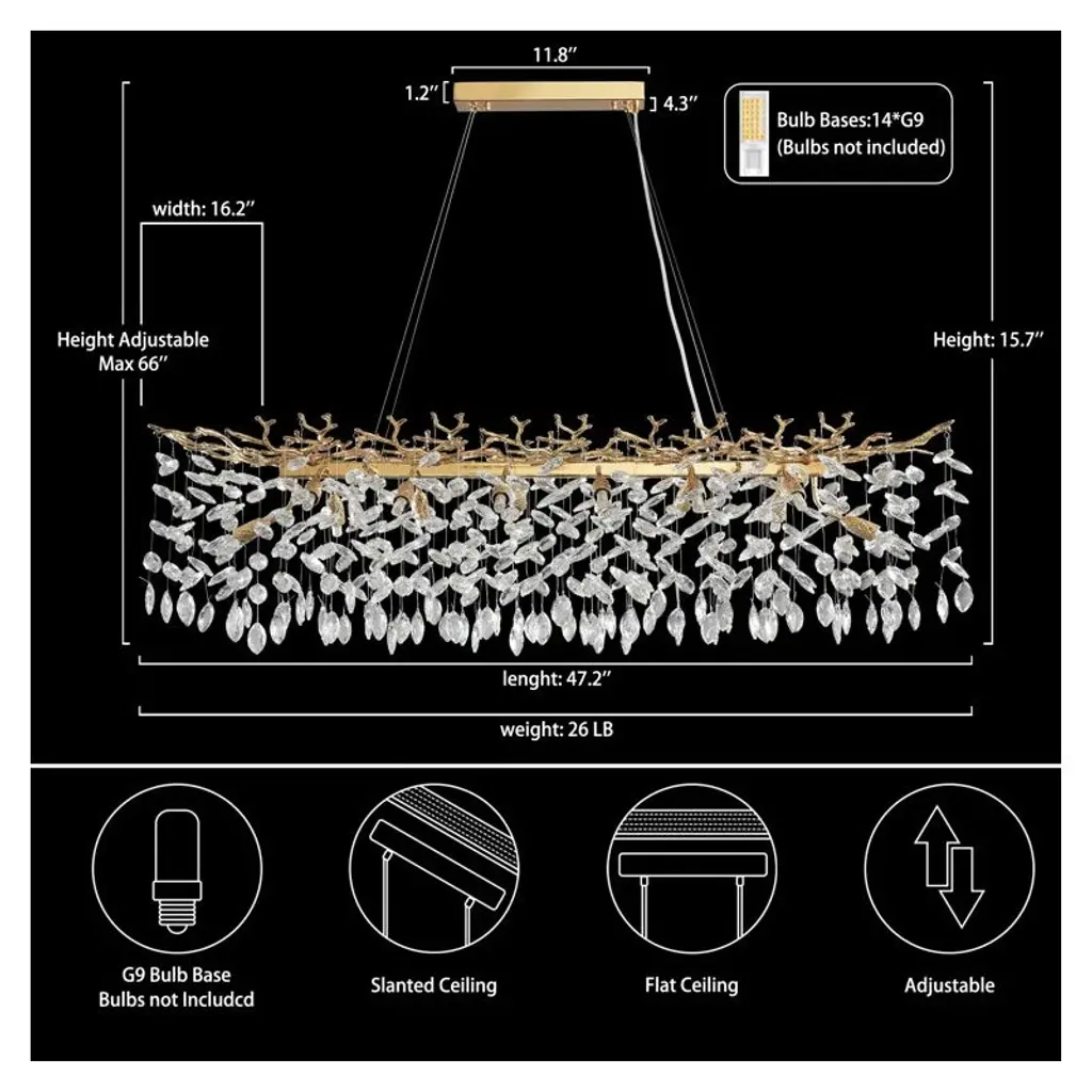 47.2in Modern Square / Rectangle Crystal Chandeliers For Dining Room, Kitchen Island Gold