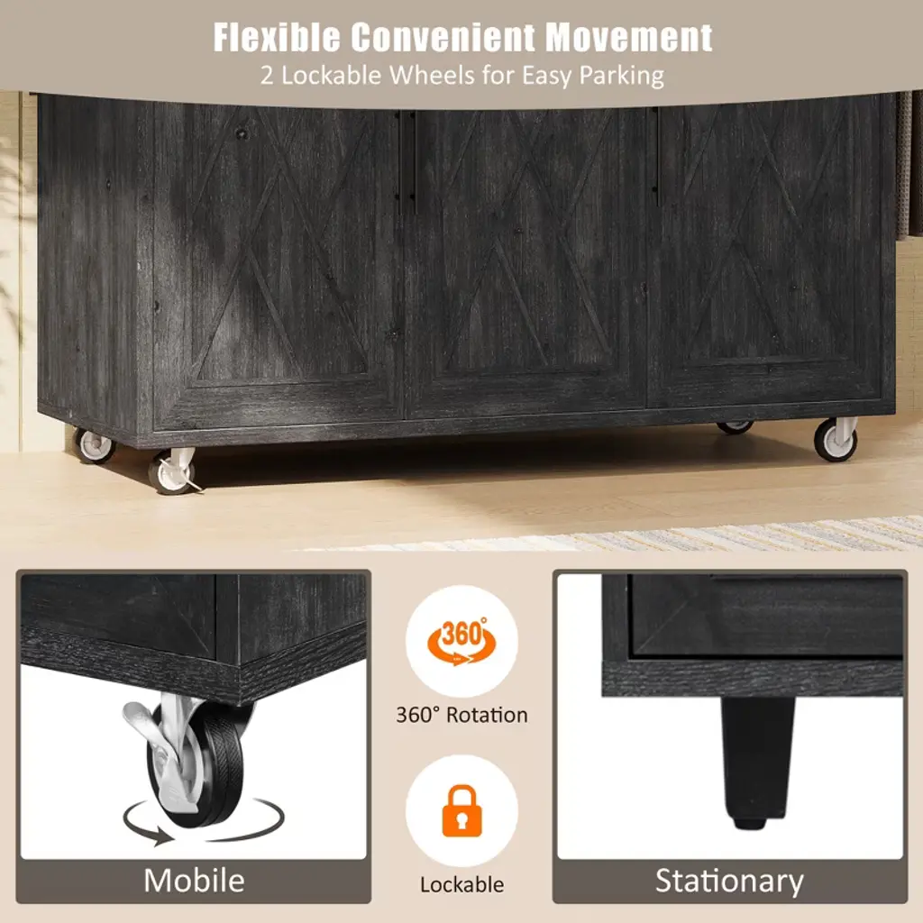 Our 51.2-inch farmhouse-style kitchen island combines vintage aesthetics with practical storage solutions, featuring a geometric twill stripe textured design, ASH bark veneer top, drop leaf, two interior storage racks, adjustable shelves, and a convenient side towel rack. Equipped with four 360¡ã rotating wheels (two lockable) and optional solid pine feet for stationary use, this eco-friendly MDF and wood island offers versatile prep, dining, and storage functionality for kitchens, dining areas, or multipurpose spaces.