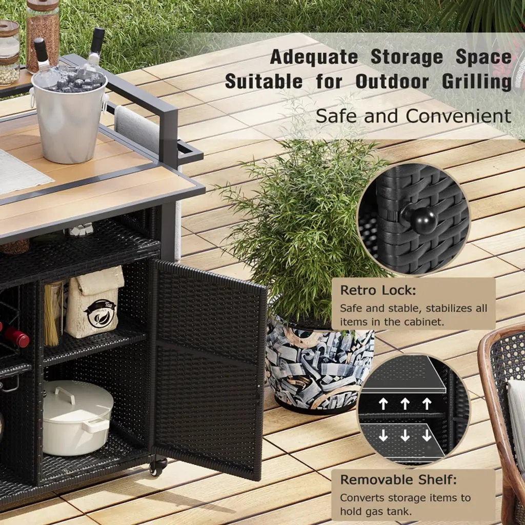 52.8"w Outdoor Grill Cart With Extended Work Table, Rolling Kitchen Island On Wheels With Storage, Patio Bar Cart For Backyard Garden Poolside
