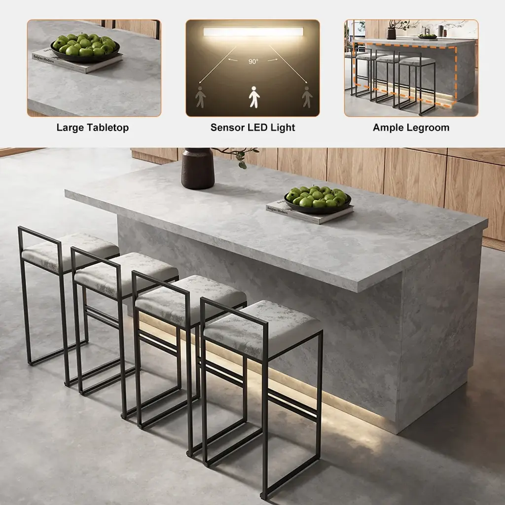 72" Japandi Style Wood Kitchen Island With Multi-Storage And Led Light Gray