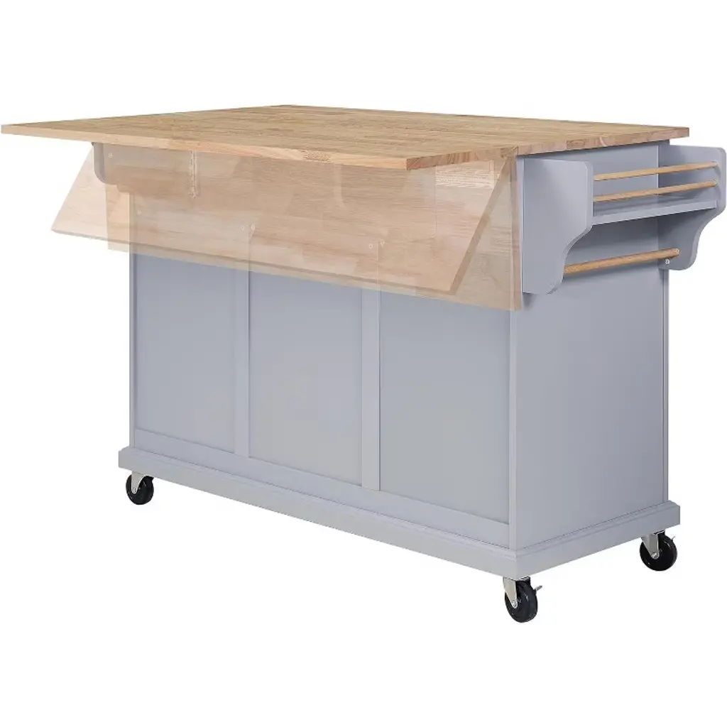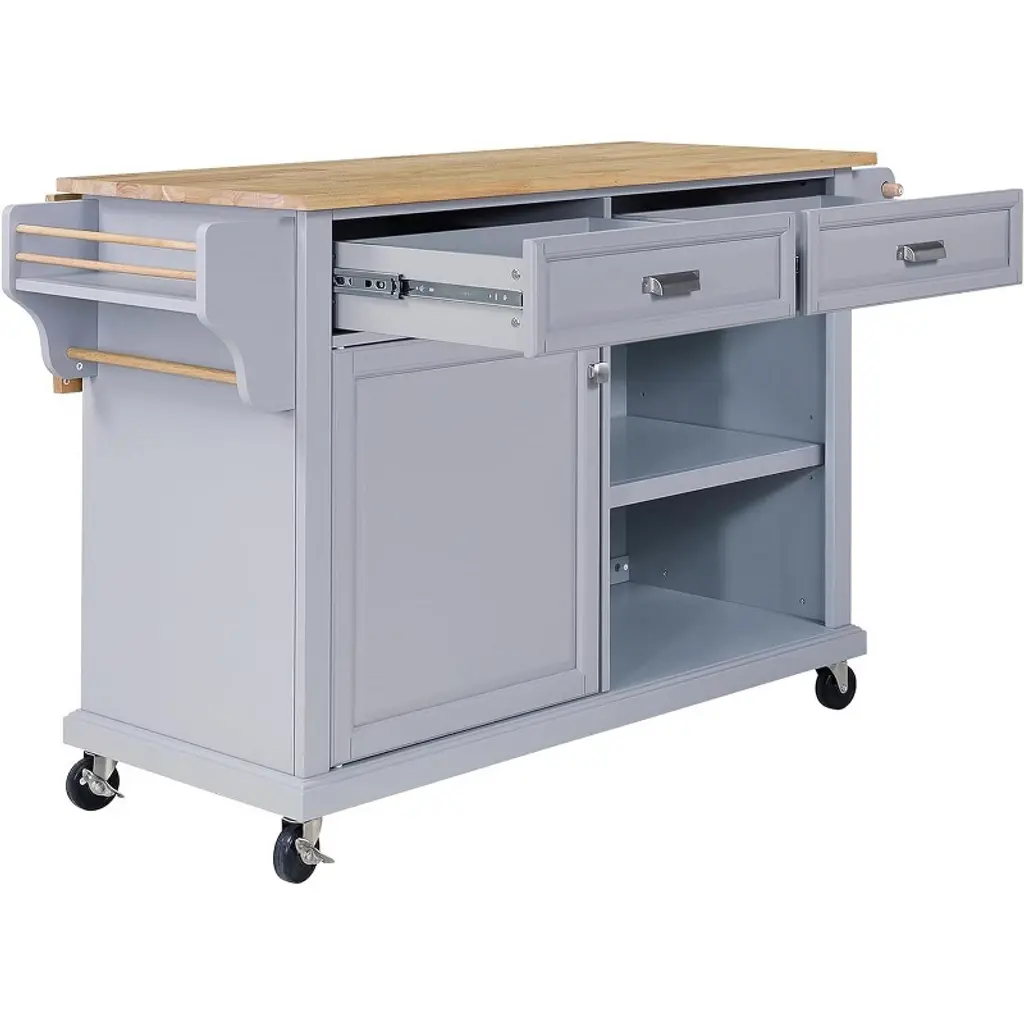 Acekool Grey Kitchen Island Cart With 2 Drawers & Spice Rack – Mobile Storage Island With Adjustable Shelves,gray