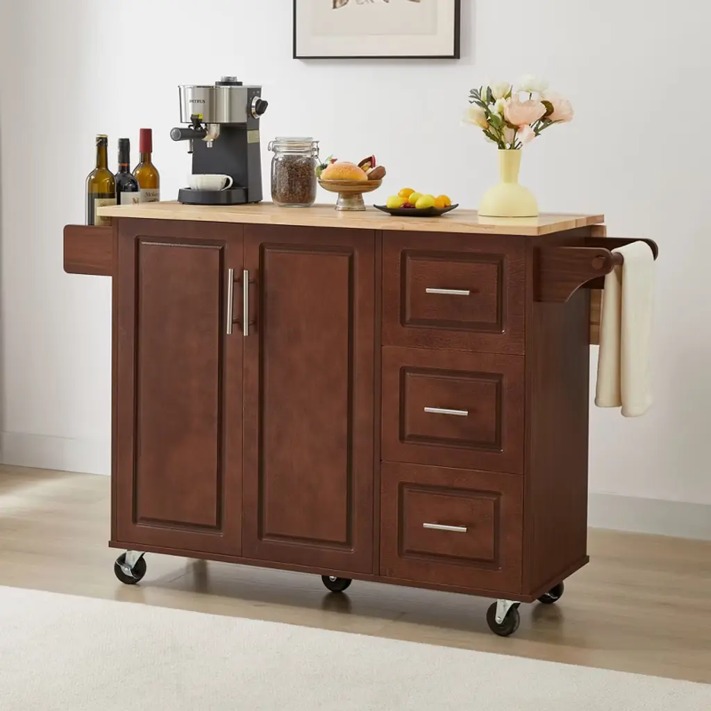 The Alexandria Full-Size Kitchen Island adds enduring style and storage to your kitchen. Featuring three cabinets, each with an adjustable shelf, this island can easily store pots, pans, and small appliances. Two large drawers keep small items like utensils and dishtowels close at hand, while the built-in spice rack and paper towel holder keep your counter space free of clutter. With a beautiful granite countertop and classic bun feet, the Alexandria Full-Size Kitchen Island is a welcome addition to your kitchen space.