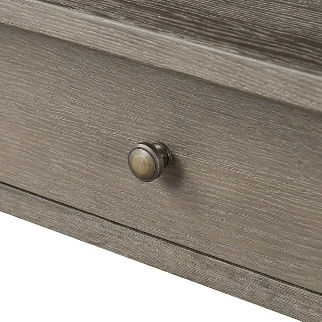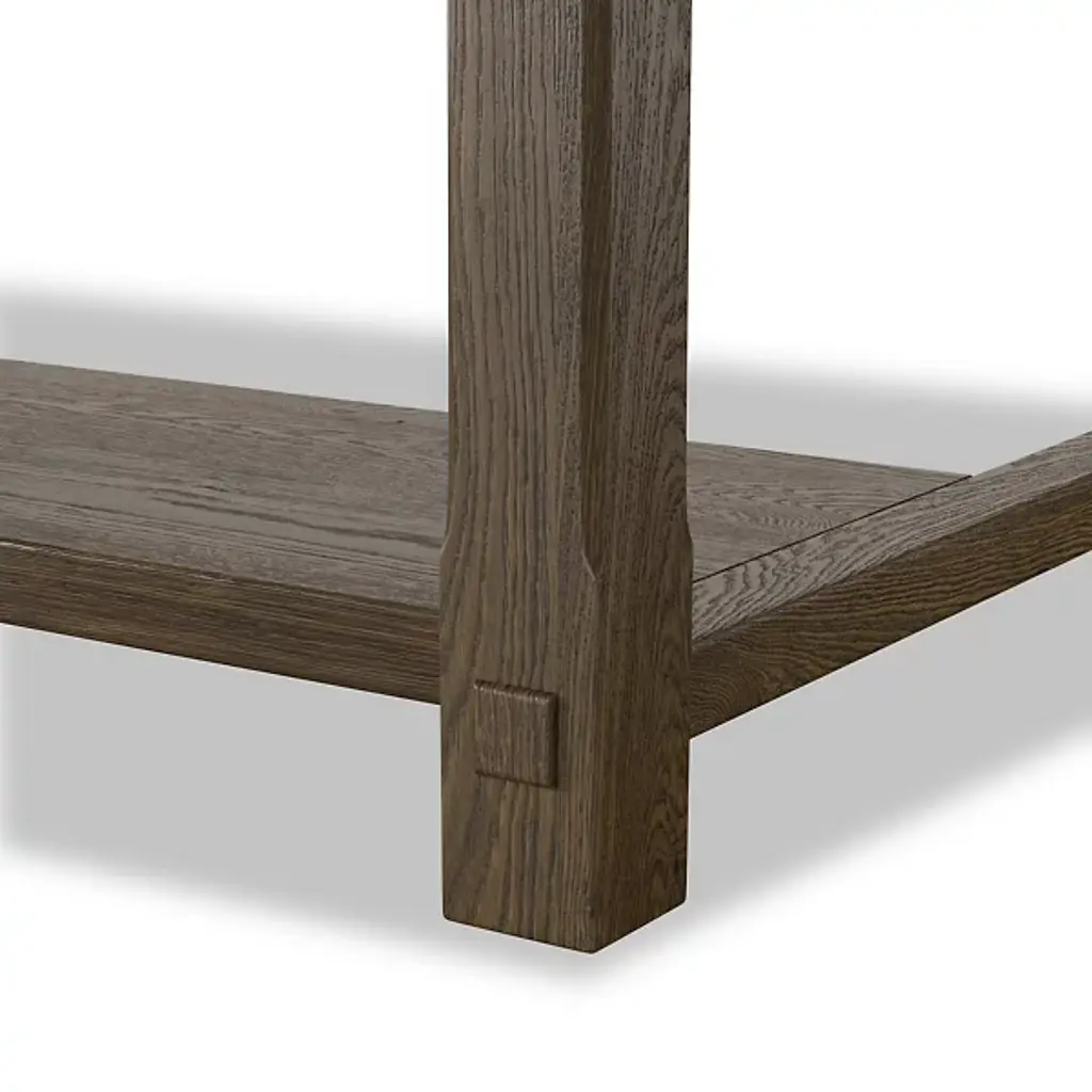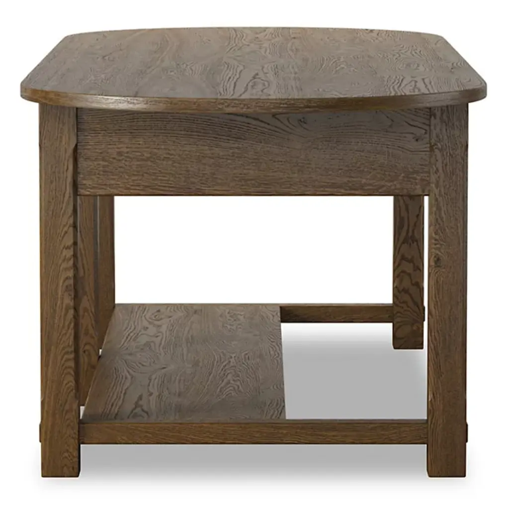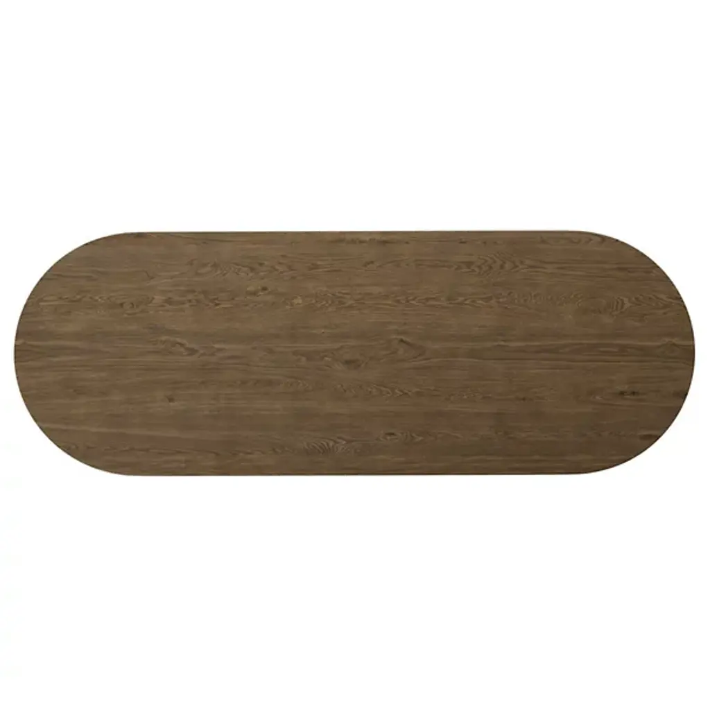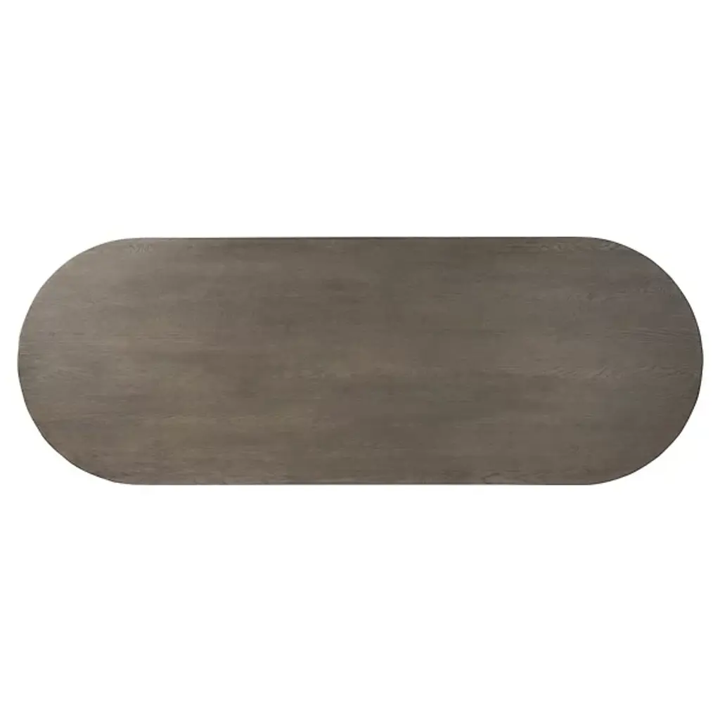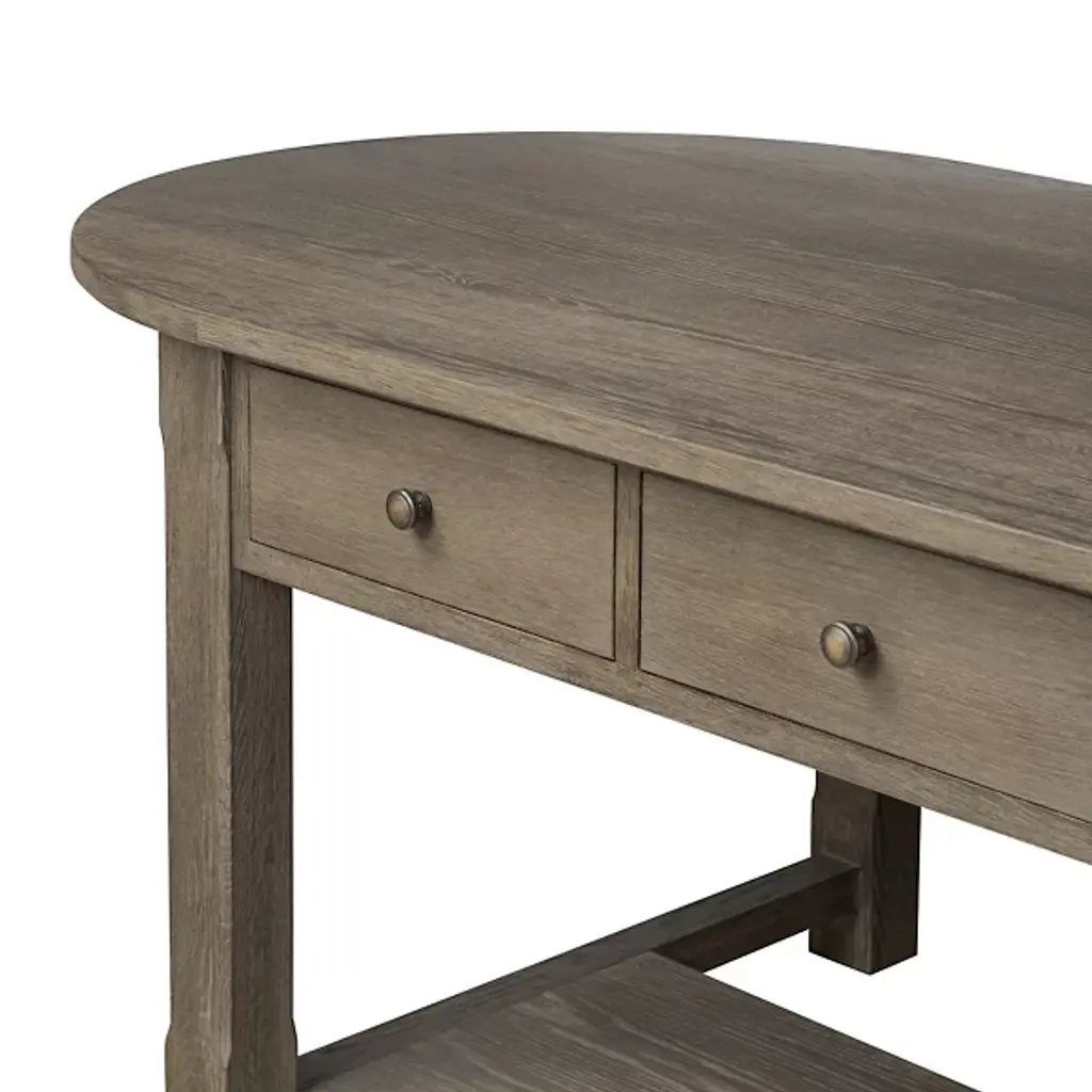 The Amber Lewis x Four Hands Elise Kitchen Island Table from Four Hands showcases a contemporary design that seamlessly blends elegance with solid functionality. A balanced assembly of oak veneer, brass, and solid wood, the table features a wide oval top that overlaps a sturdy understructure of solid wood and veneer. The curved sides of the tabletop create a striking contrast with the angular elements, while the subdued, rounded drawer pulls in rich brass add a touch of sophistication. With its vibrant texture and modern aesthetic, this kitchen island table embodies contemporary style, making it a versatile and memorable addition that doesn't overpower its surroundings.