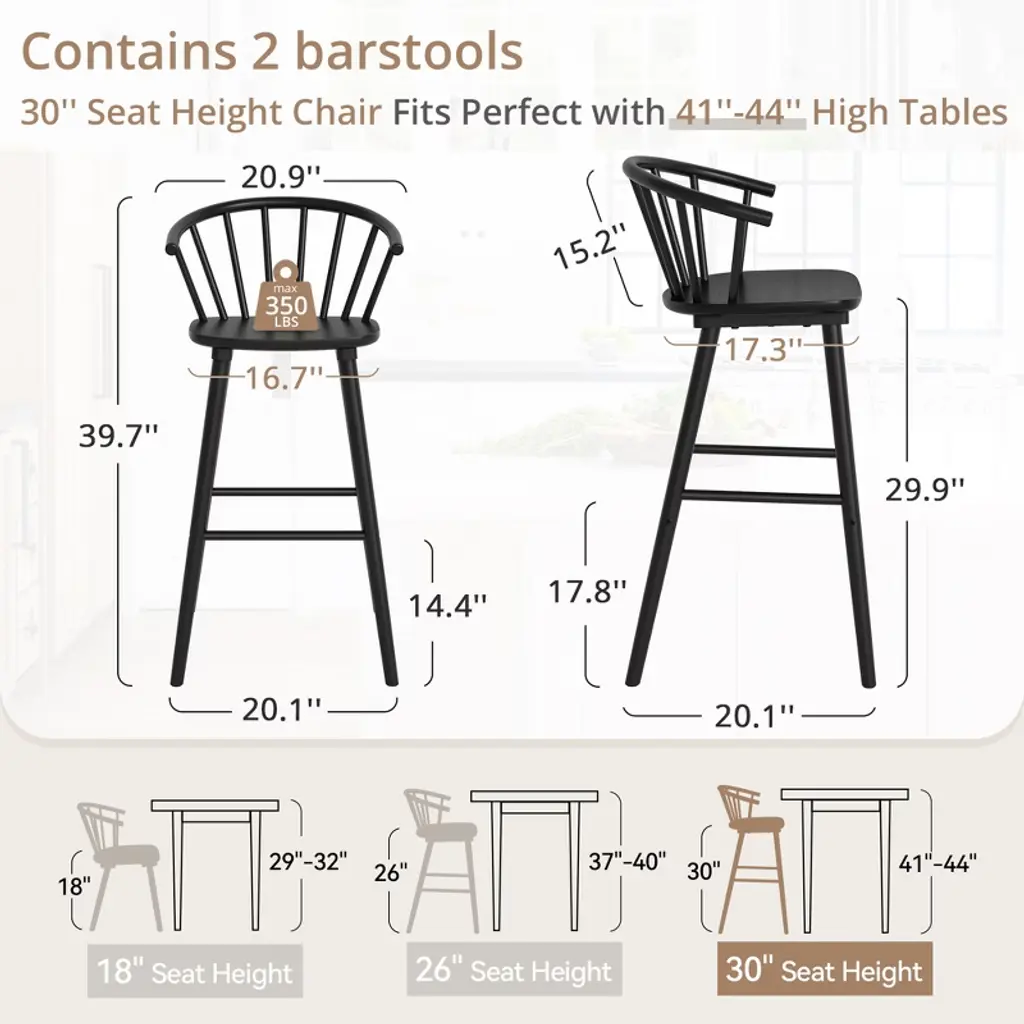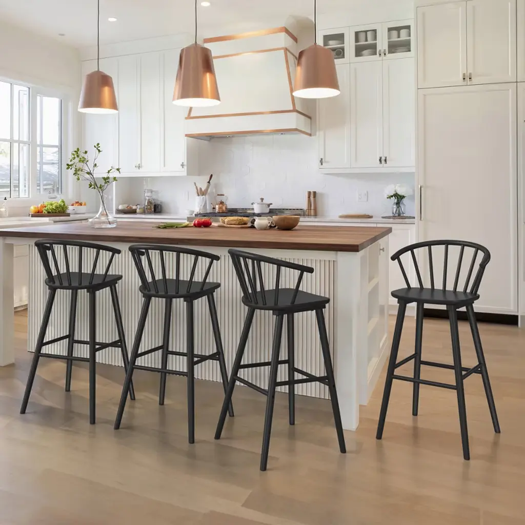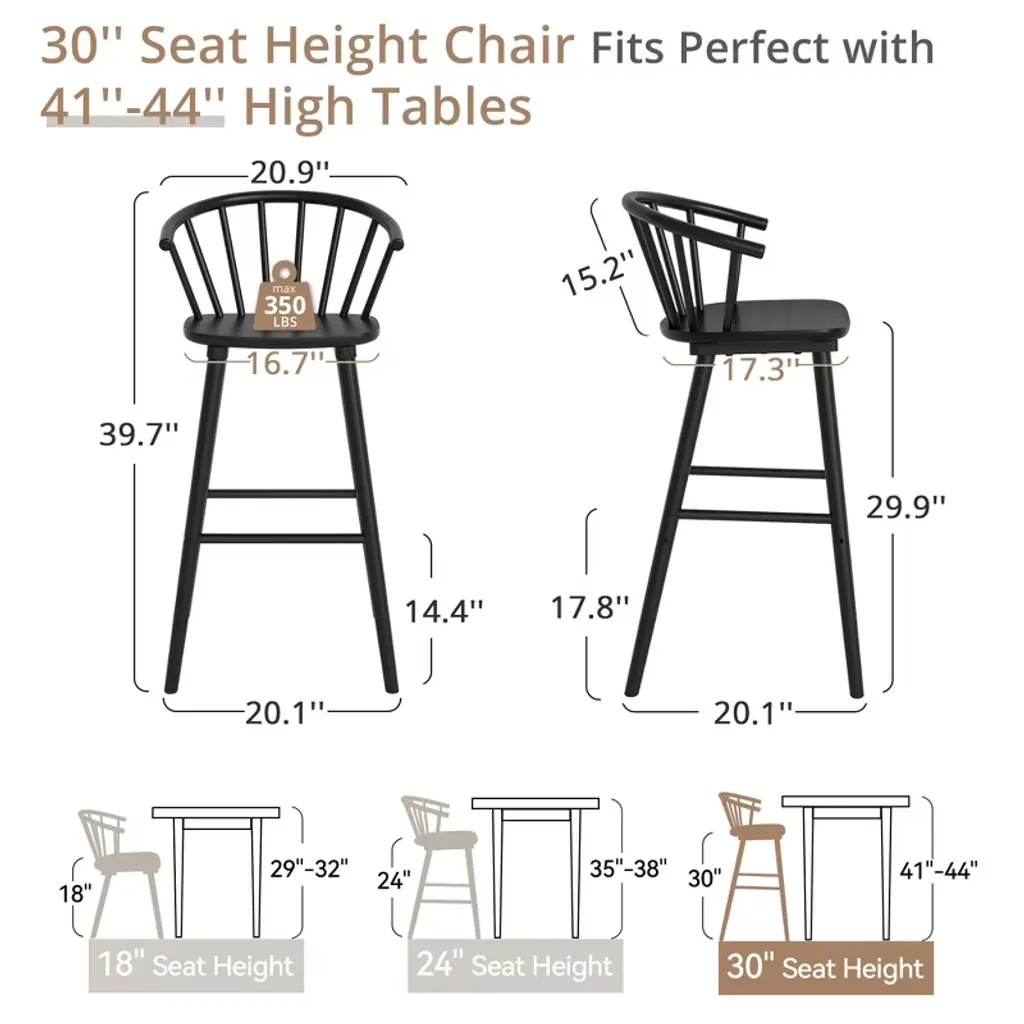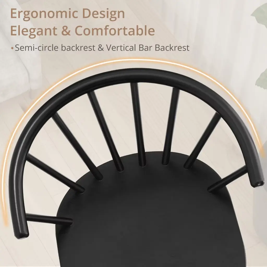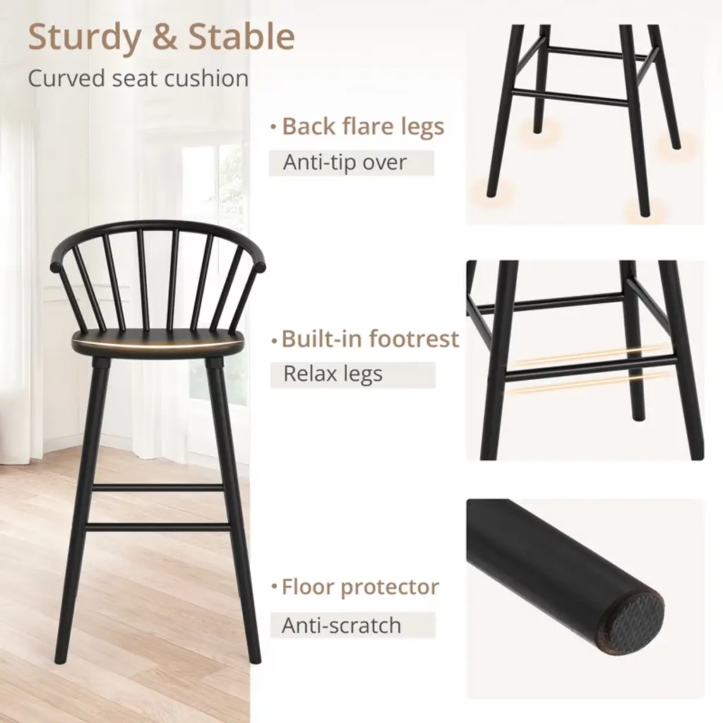 Ergonomic Circular Backrest: Designed with a semi-circular shape, the backrest conforms to the natural curve of your spine, providing exceptional support and comfort for extended sitting periods. Its ergonomic design encourages proper arm positioning and helps minimize fatigue. Sophisticated and Versatile Design: Featuring graceful curves, these bar stools add a stylish touch to any room. They effortlessly complement both modern and mid-century interior styles, making them ideal for dining areas, living rooms, entertainment spaces, lounges, cafes, and bars. Sturdy and Reliable Construction: Crafted with a solid rubberwood frame and legs, these stools are built for durability and can support up to 350 pounds. The reinforced back flare legs enhance stability and safety, while the floor protectors prevent damage to your flooring. Simple and Quick Assembly: The stools are easy to assemble in just three simple steps, taking around five minutes to complete. Our customer support team is available 24/7 to assist with any questions or concerns, and you can reach us by email for fast help and solutions.