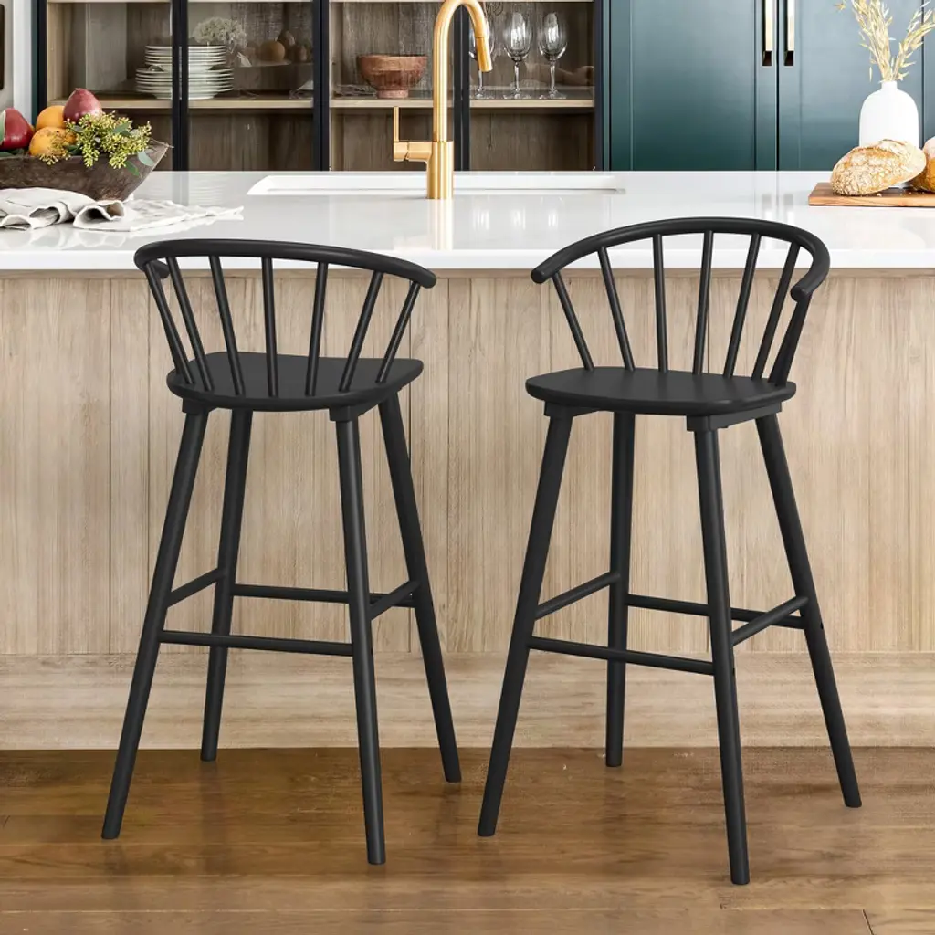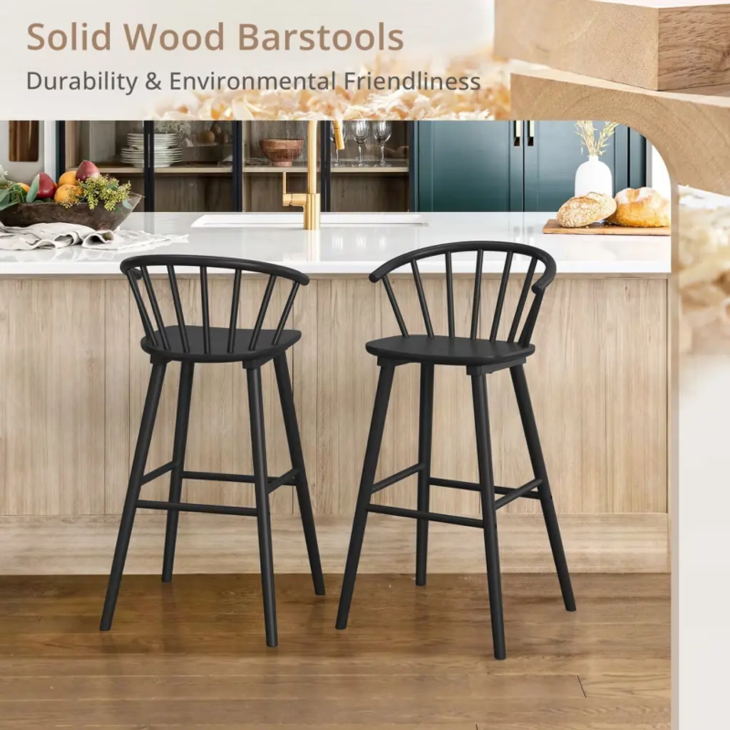 Arceso 30 Inch Wood Bar Stools With Semicircular Backrest, Black Farmhouse Barstools Set Of 2, Modern Counter Height Bar Stools For Kitchen Island Pub