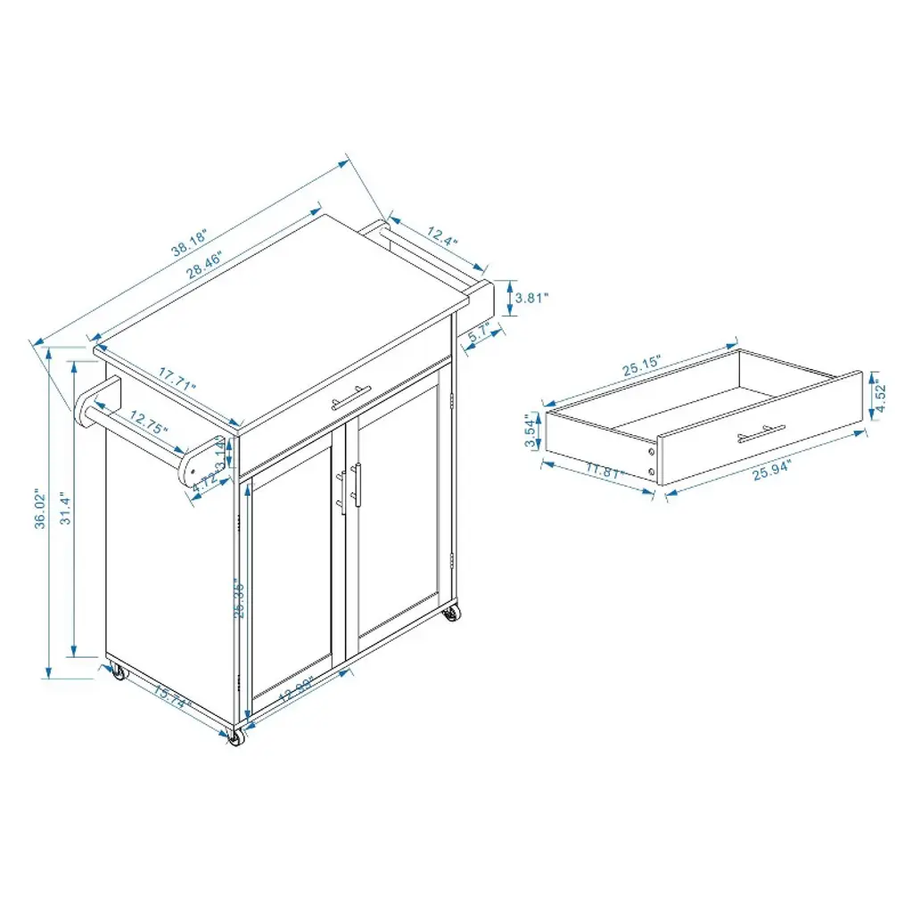 Bella Depot 38.18'' Kitchen Island Trolley Cartwith 1 Drawer & 2 Doors With Adjustable Shelves