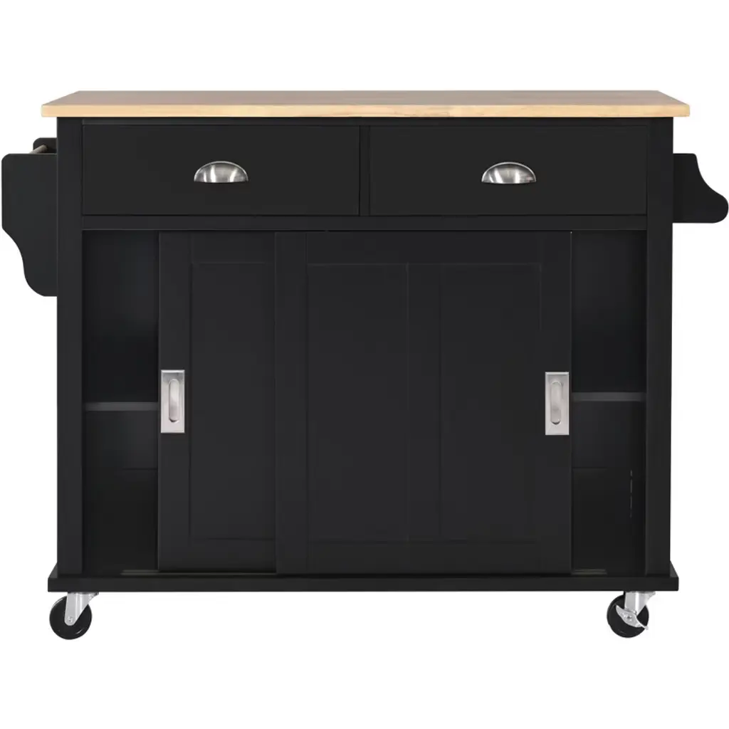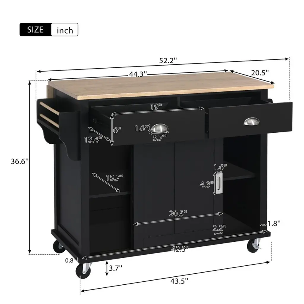 Bella Depot 52.2'' Kitchen Island Cart With Rubber Wood Drop-leaf Countertop On 4 Wheels-black