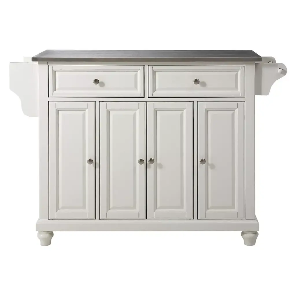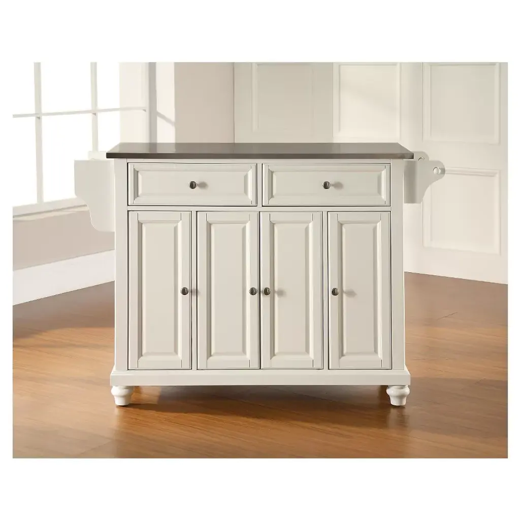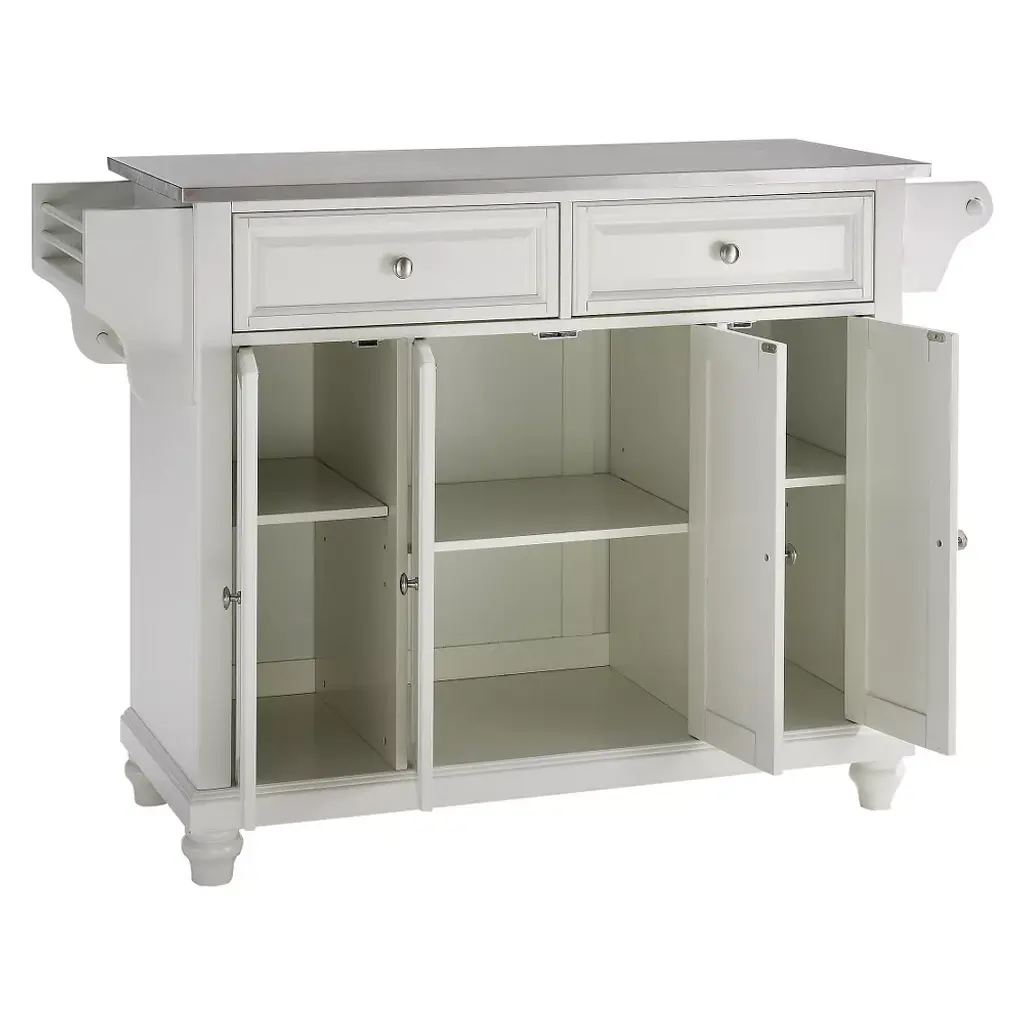 Cambridge Stainless Steel Top Kitchen Island - White - Crosley: Hardwood Frame, 2 Drawers, 4 Doors, Adjustable Shelves