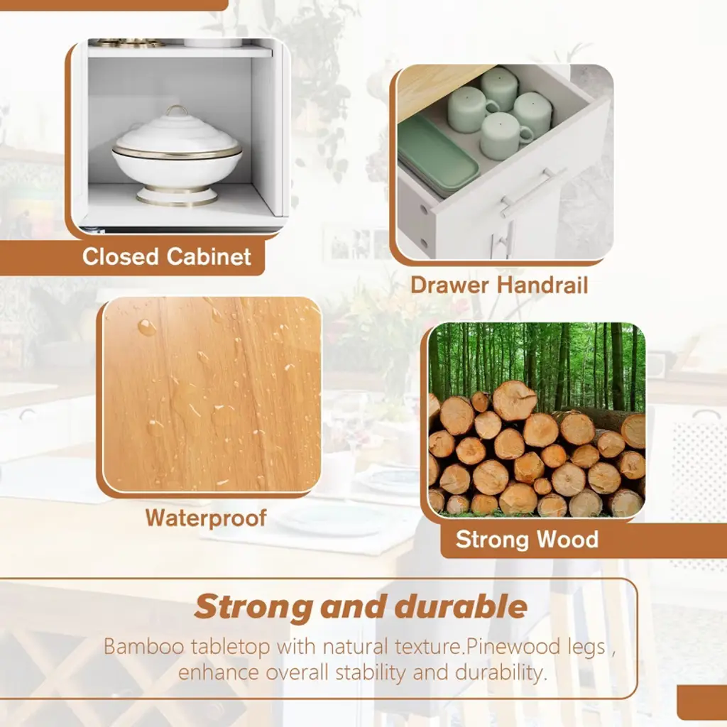 Celebalcony Kitchen Island Cart White