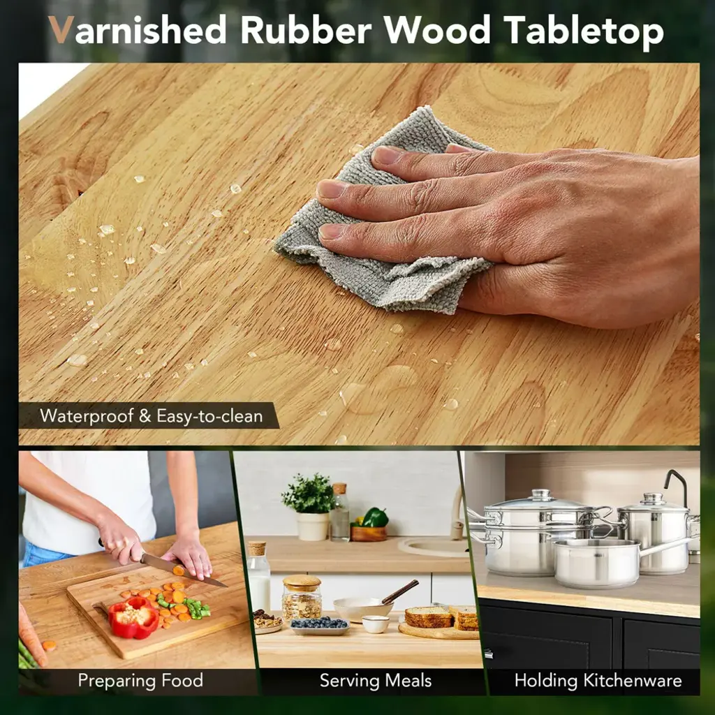Costway Kitchen Island Trolley Cart Wood Top Rolling Storage Cabinet W/knife Block Black