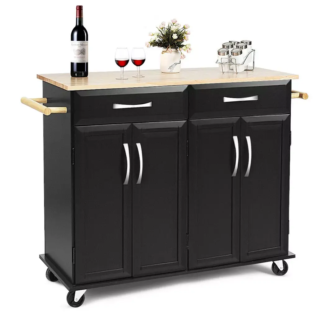 Costway Rolling Kitchen Trolley Island Black Cart Wood Top Storage Cabinet Utility W/ Drawers