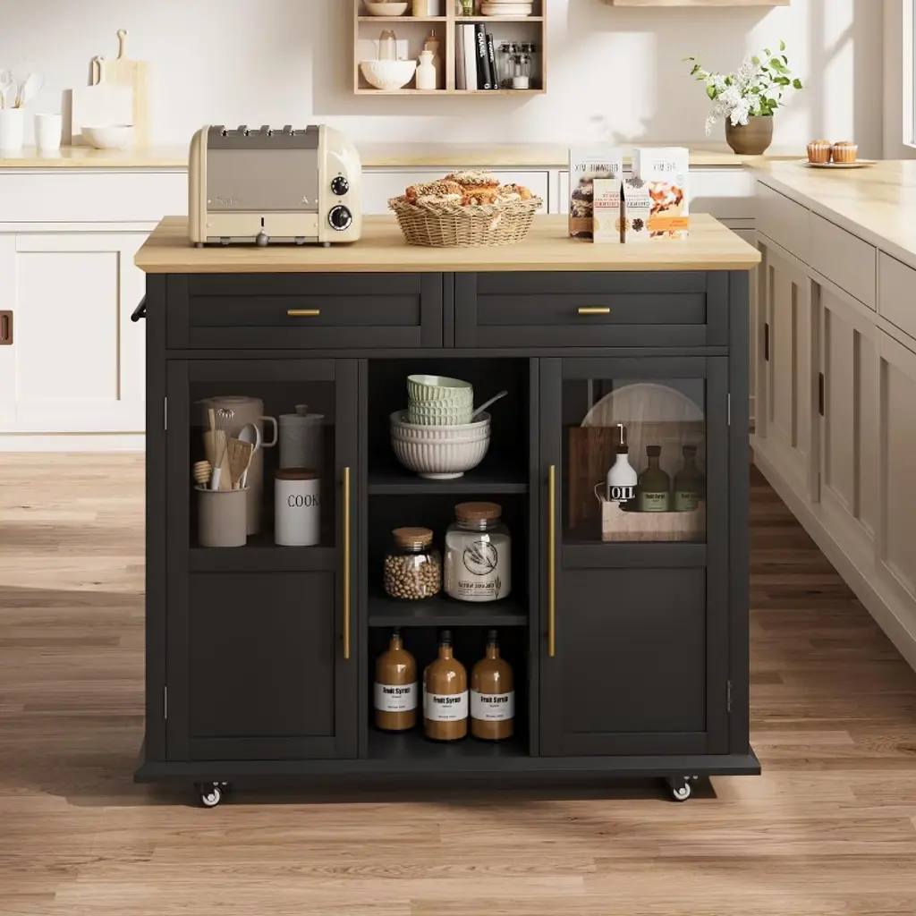 Spacious Rustic Design with Smart Storage:This kitchen island features 2 cabinets, 2 drawers, and 3 shelves for maximum organization. The solid wood and MDF construction offers durability with charming vintage appeal, perfect for any kitchen decor.