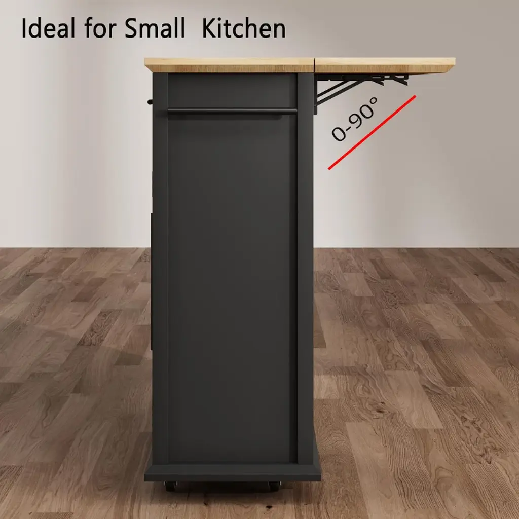 Coucheta 30'' Tall Mobile Kitchen Island Cart With Drop Leaf, Rolling Storage Cart With Cabinet & Drawers, Kitchen Cart Table For Small Spaces,black