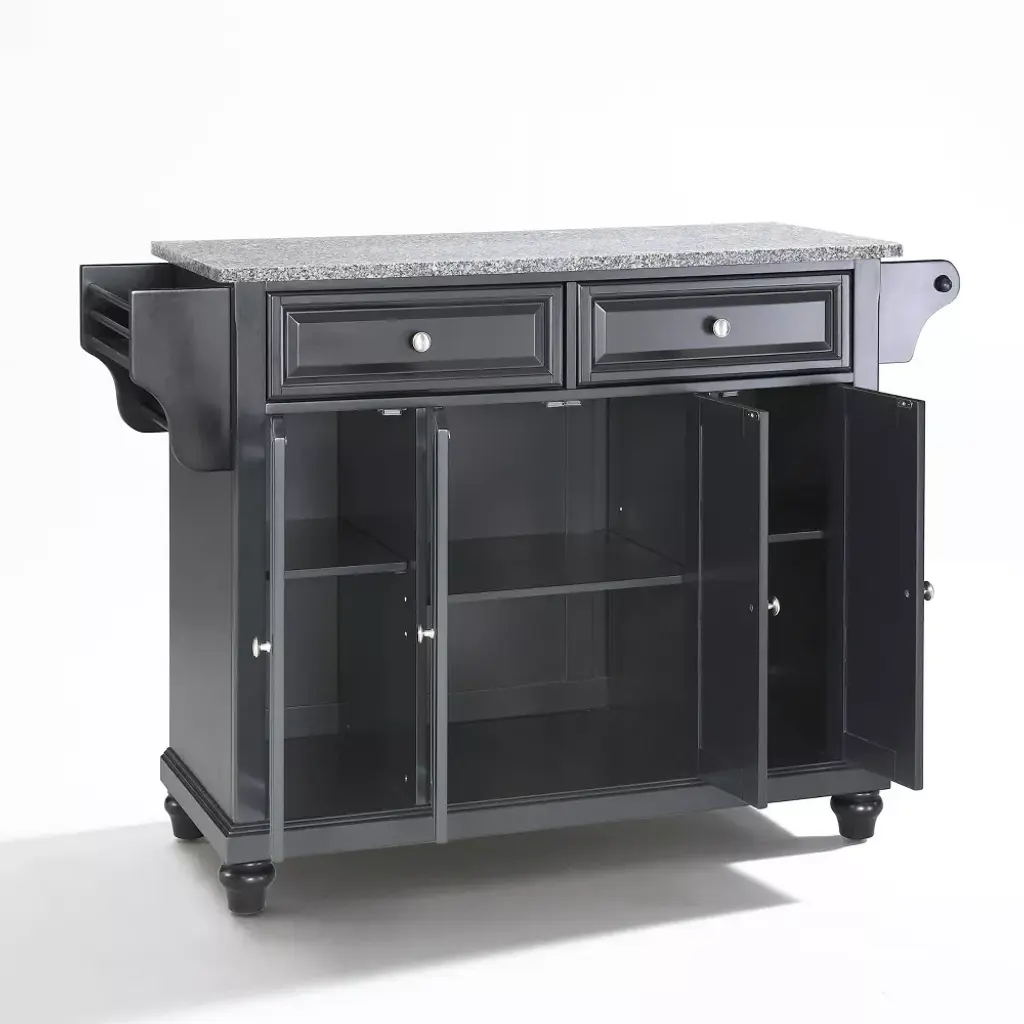 Crosley Cambridge Granite Top Full Size Kitchen Island/cart Black/gray: With Adjustable Shelves, Towel Bar, Wood Frame