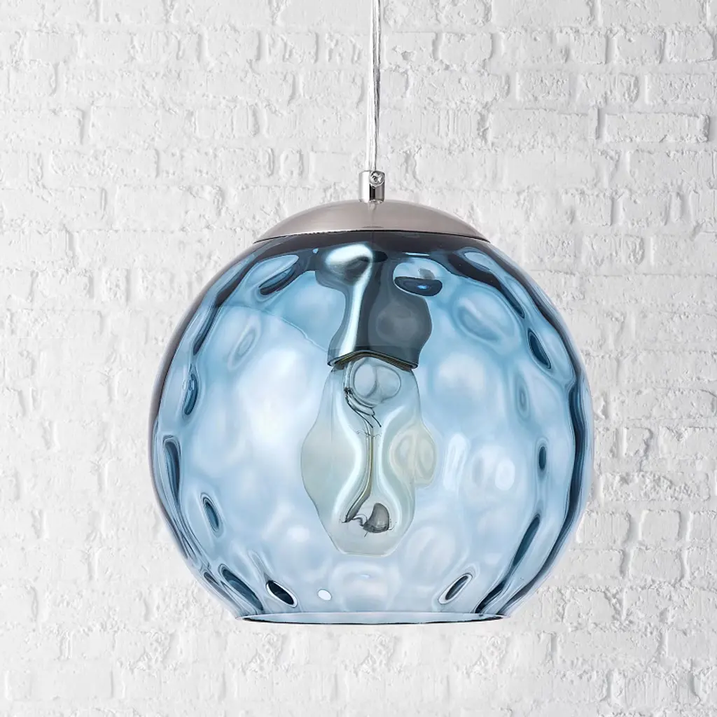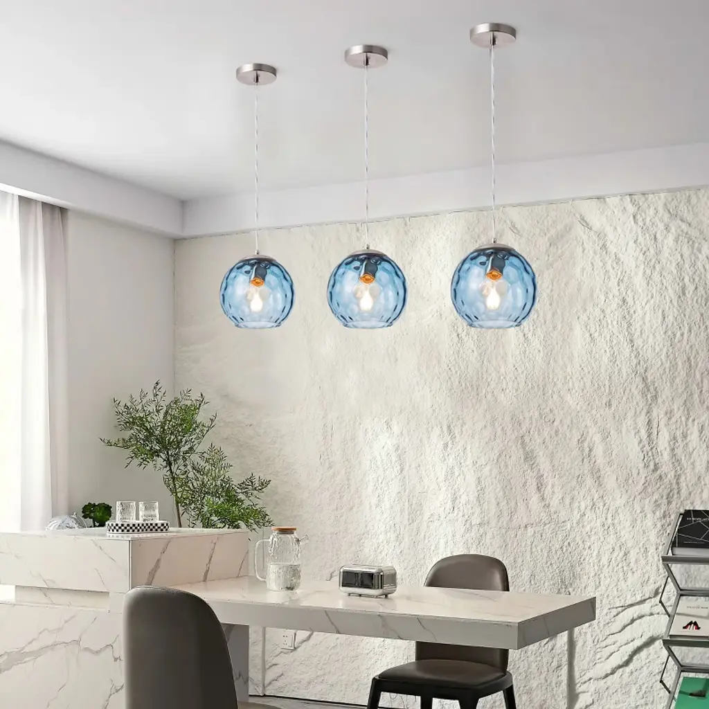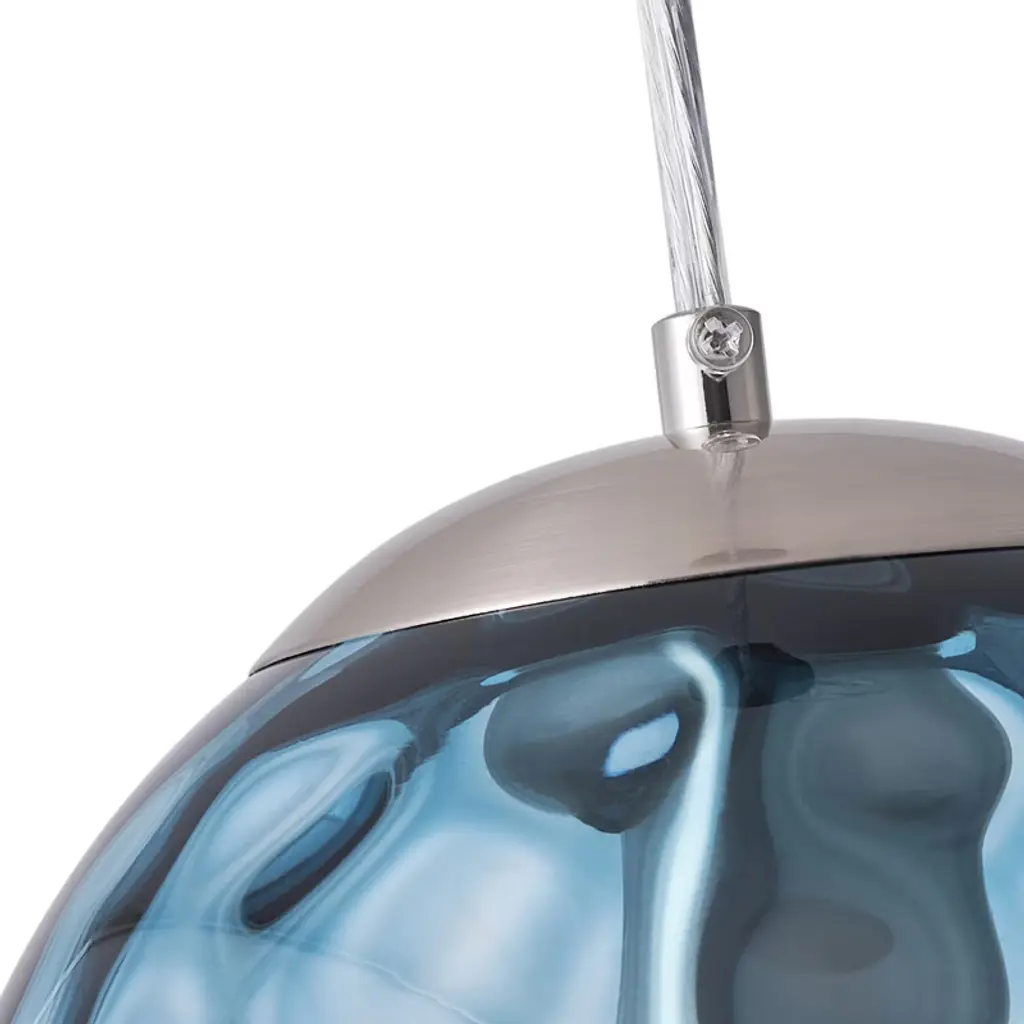 Dewdrop Blue Globe Pendant Light, Brushed Nickel Hanging Ceiling Lamp With Textured Glass Shade For Kitchen Island Bar