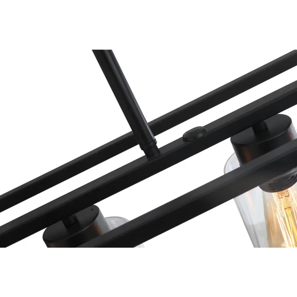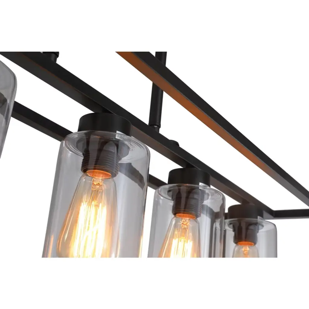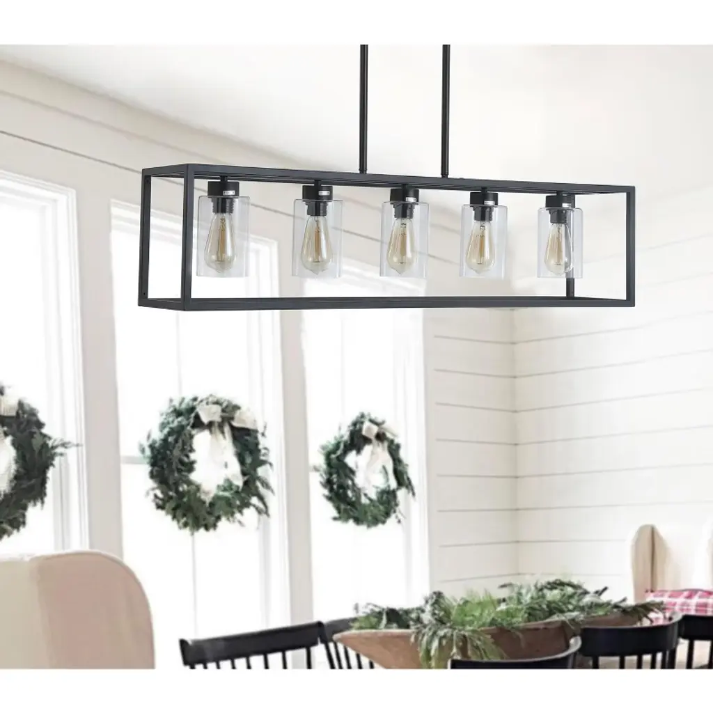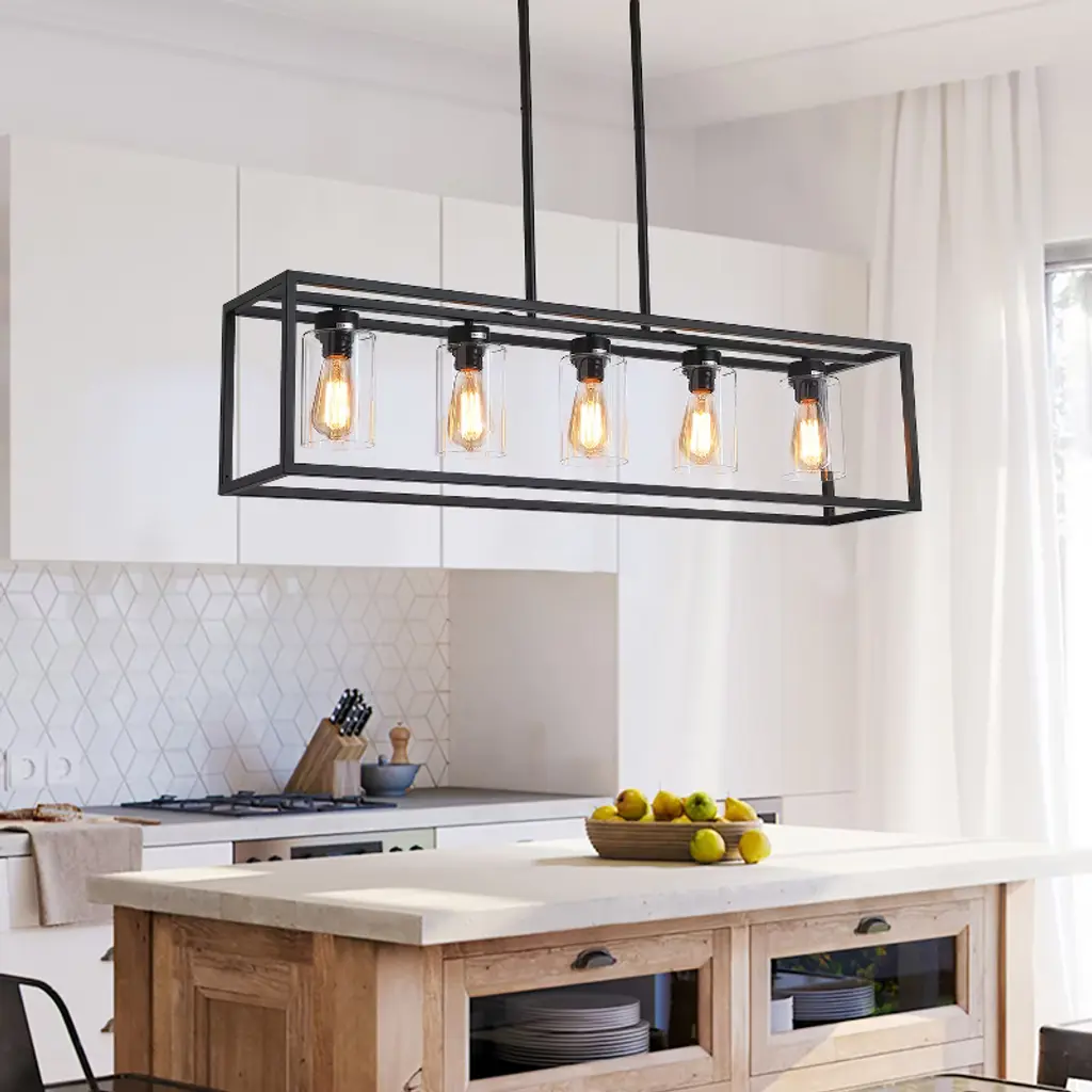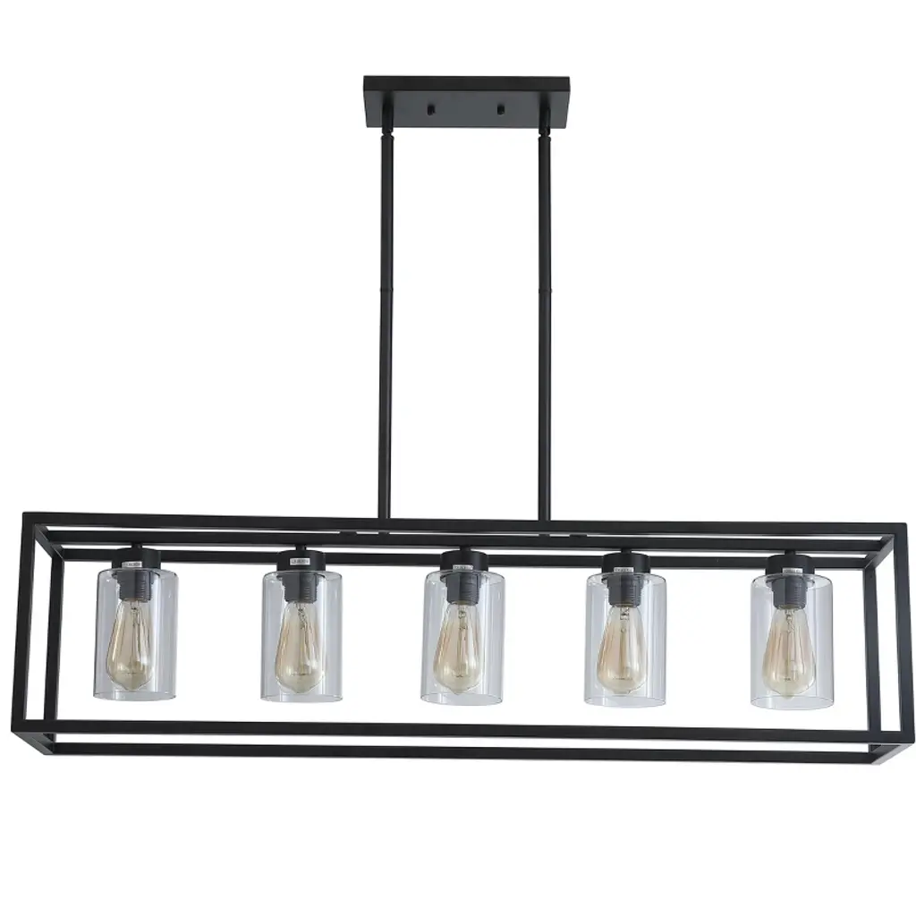 Dewdrop Industrial 5-light Kitchen Island Lighting, Rectangle Black Frame Chandelier With Clear Glass Shades For Dining Table