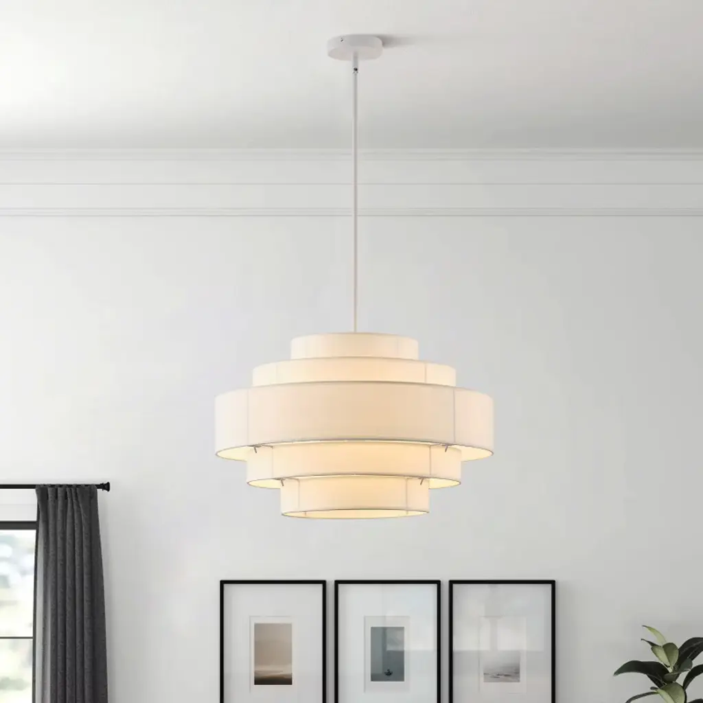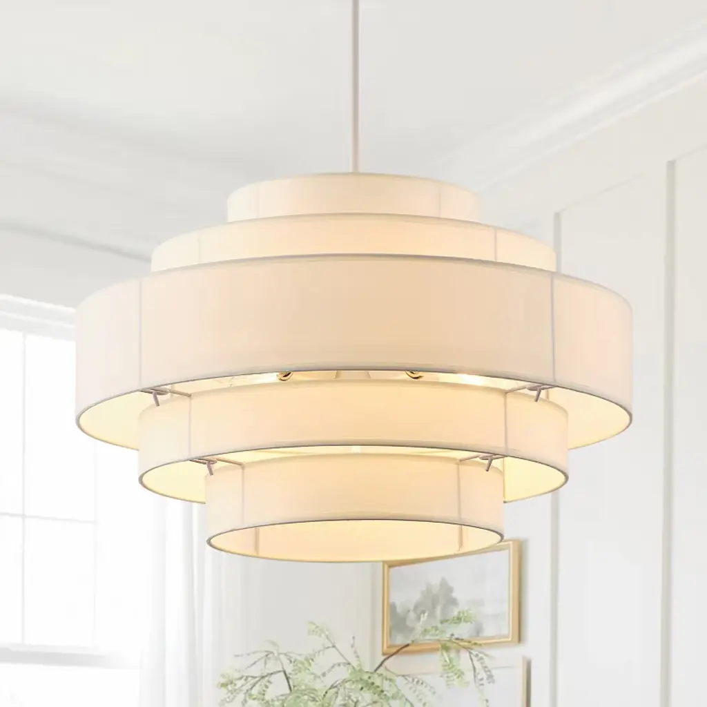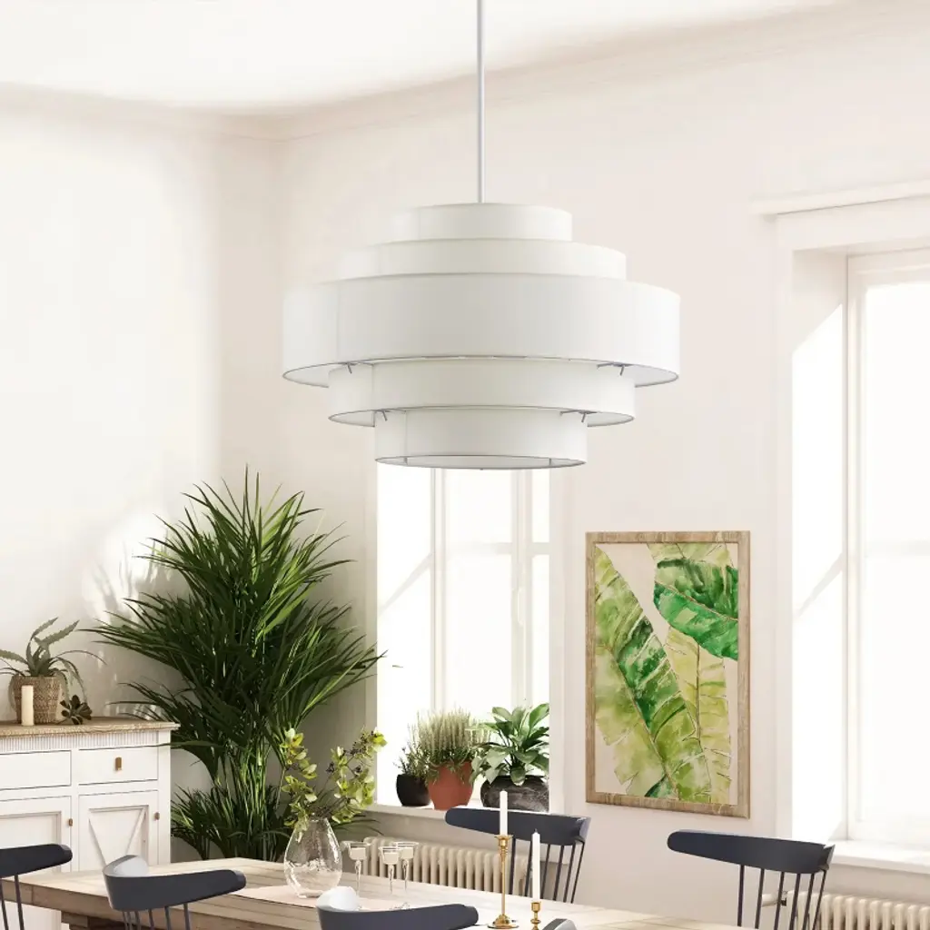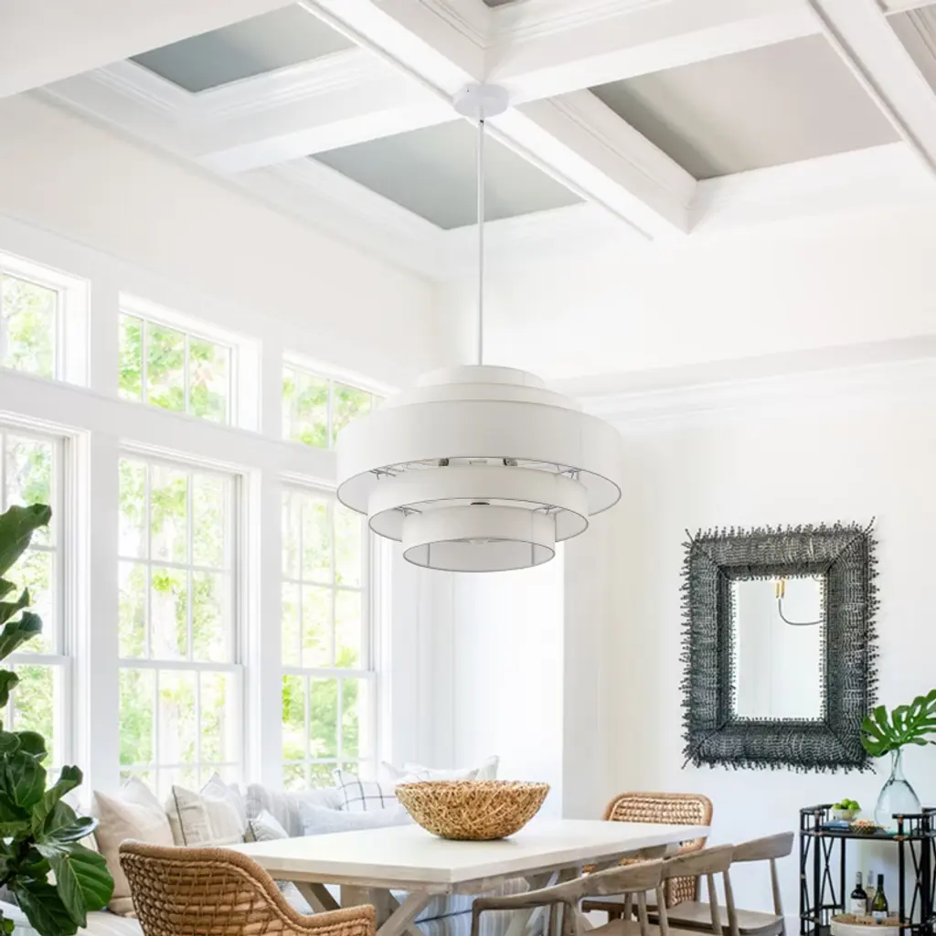 The Dewdrop 5-Light Pendant Light blends modern style with warm elegance. Built with a matte white iron frame and a layered beige fabric shade, it creates soft, inviting light for dining rooms, kitchens, or living areas. Designed with five E26 sockets (12W max, bulbs not included), this pendant provides ample illumination. ETL certified for safety and crafted with durable materials, it's a stylish upgrade for any modern home.