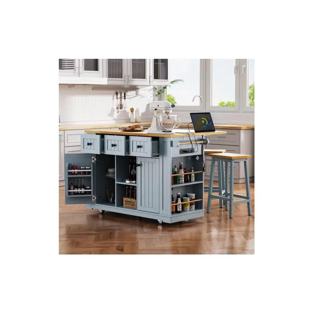 Dexmalle Grey Blue 53inch Large Kitchen Island With 2 Bar Stools