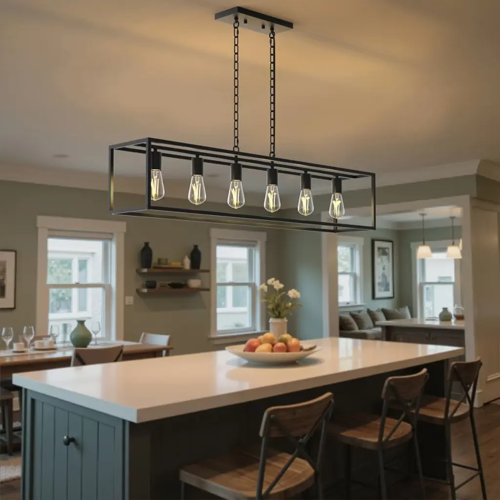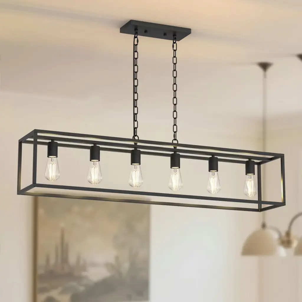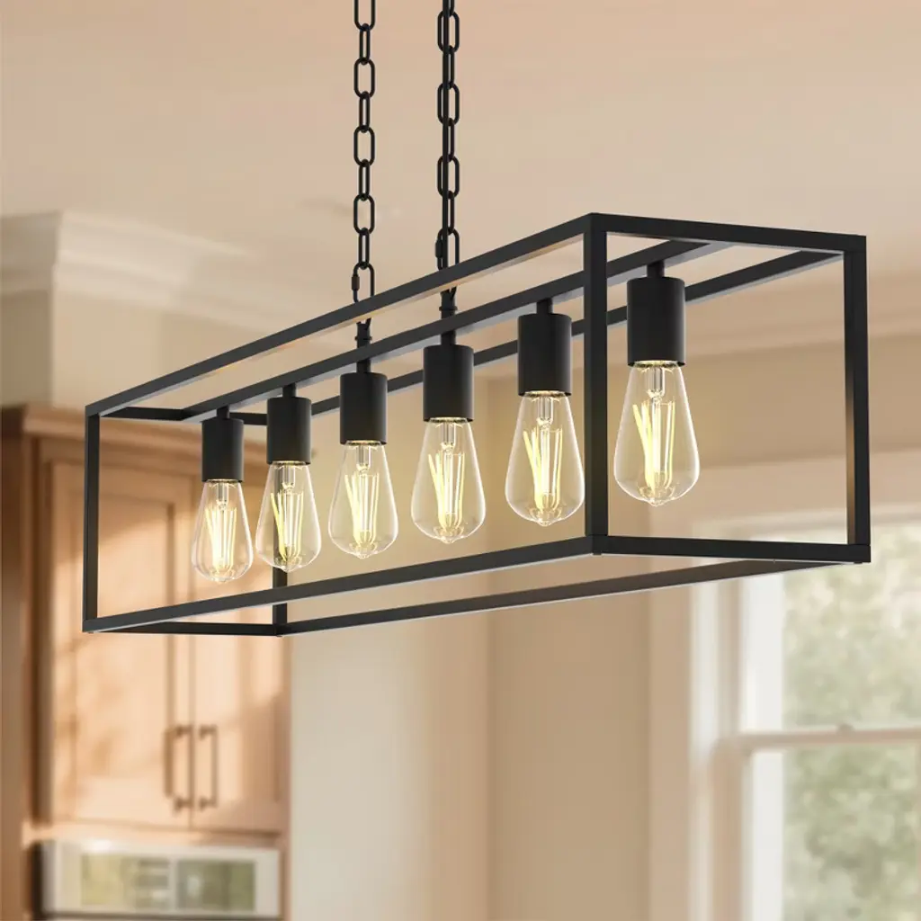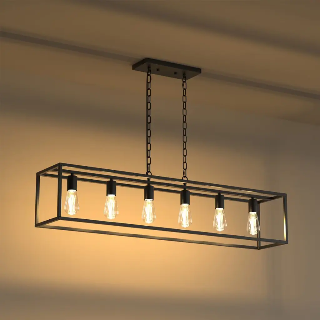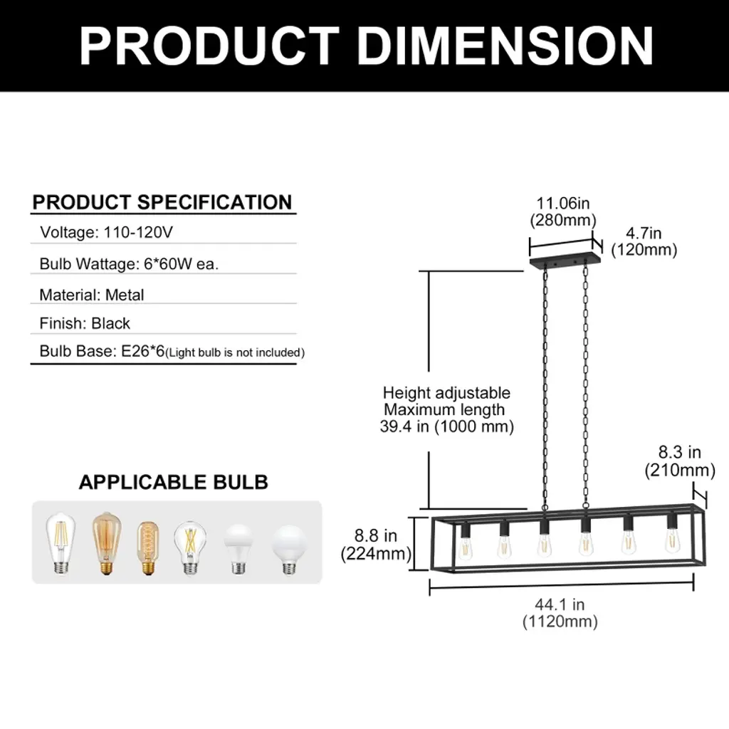 Introducing our sleek and sophisticated 6-light island pendant, designed to effortlessly elevate the ambiance of any space with its modern industrial charm. Crafted from high-quality black matte metal, this linear pendant light offers both functionality and style, making it an ideal lighting solution for various settings. Featuring three E26 sockets, this pendant light provides ample illumination to brighten up your kitchen island, dining area, or workspace.