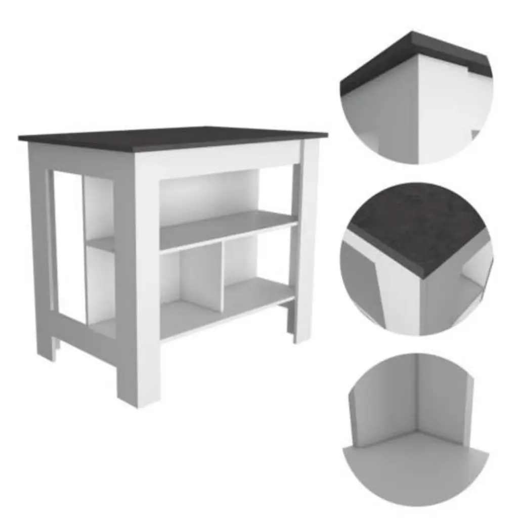 Fontoi Kitchen Island With Four Legs&three Open Storage Shelves, Kitchen Table For Home, White&oak, 40.5"*35.4"*27.5"