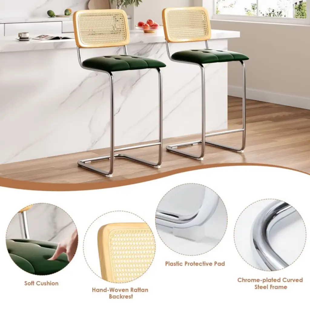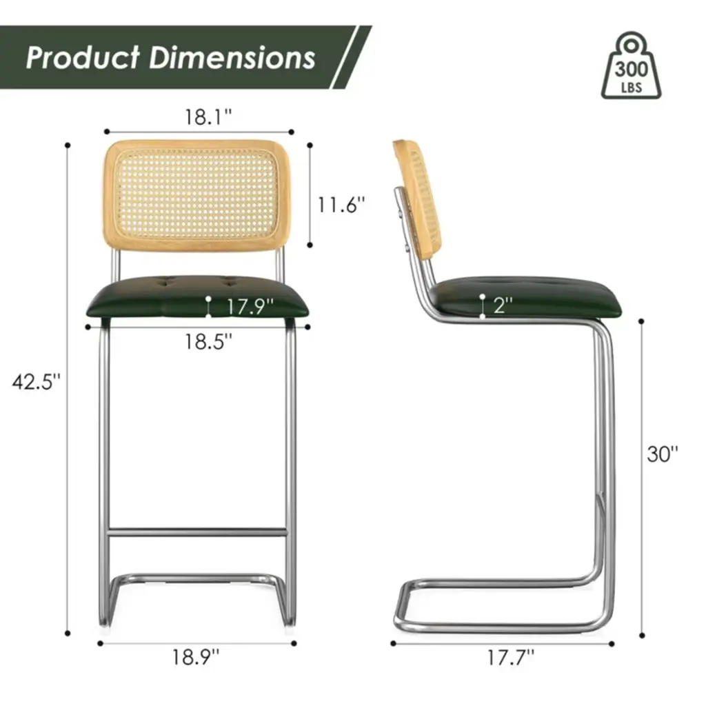 Furniinspire Dining Chair, Counter Height Bar Stools Set Of 2, Bar Stools Without Arms For Kitchen Islands, Green, 18.9"*17.7"*42.5"