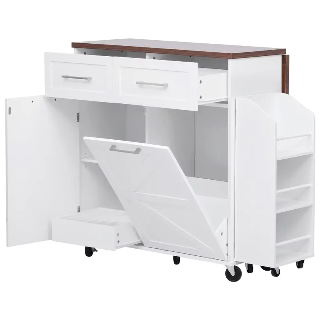 Ktmbdw Farmhouse Kitchen Island With Drop Leaf,kitchen Storage Island With Removable Side Racks,two Drawers,rolling Kitchen Cart On Wheels For Kitchen