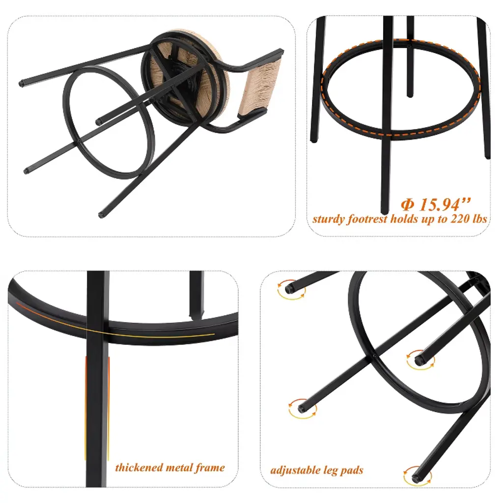 Kwpzqeb Boho Swivel Bar Stools Set Of 2, Round Counter Stools With Back & Metal Frame, Hand Woven Paper Rope Tall Bar Stools For Kitchen Island, Bar