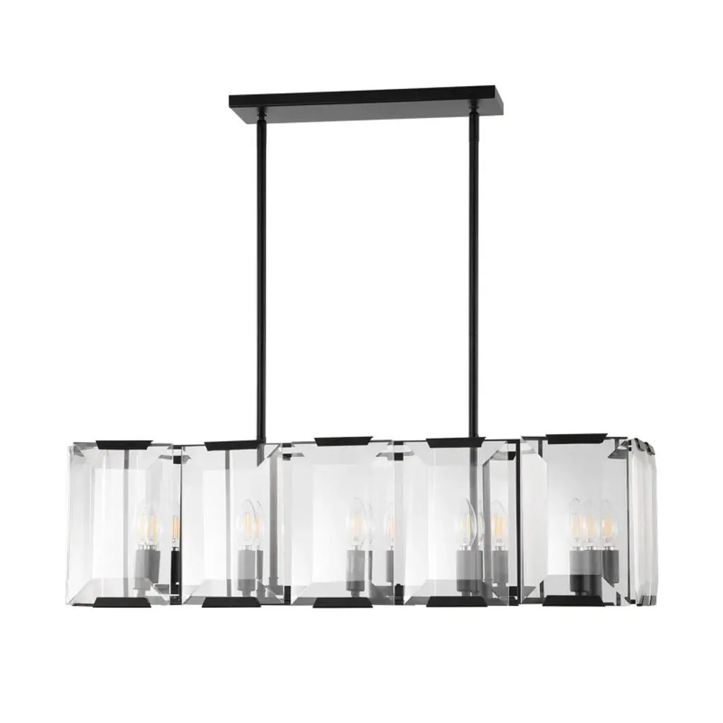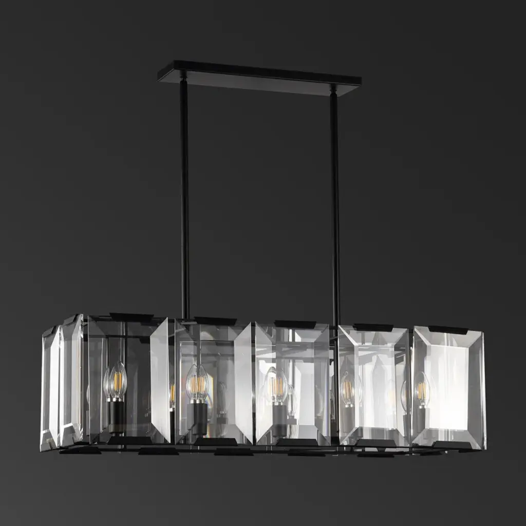 Evoking the feel of exclusive penthouse suites, this Lafe Chandelier is absolutely alluring in its celebrity-chic appeal. Lafe sleek black metal frame and emerald-cut crystal shades exude dramatic modern glamour, while its candle-style bulbs give a touch of classic elegance.