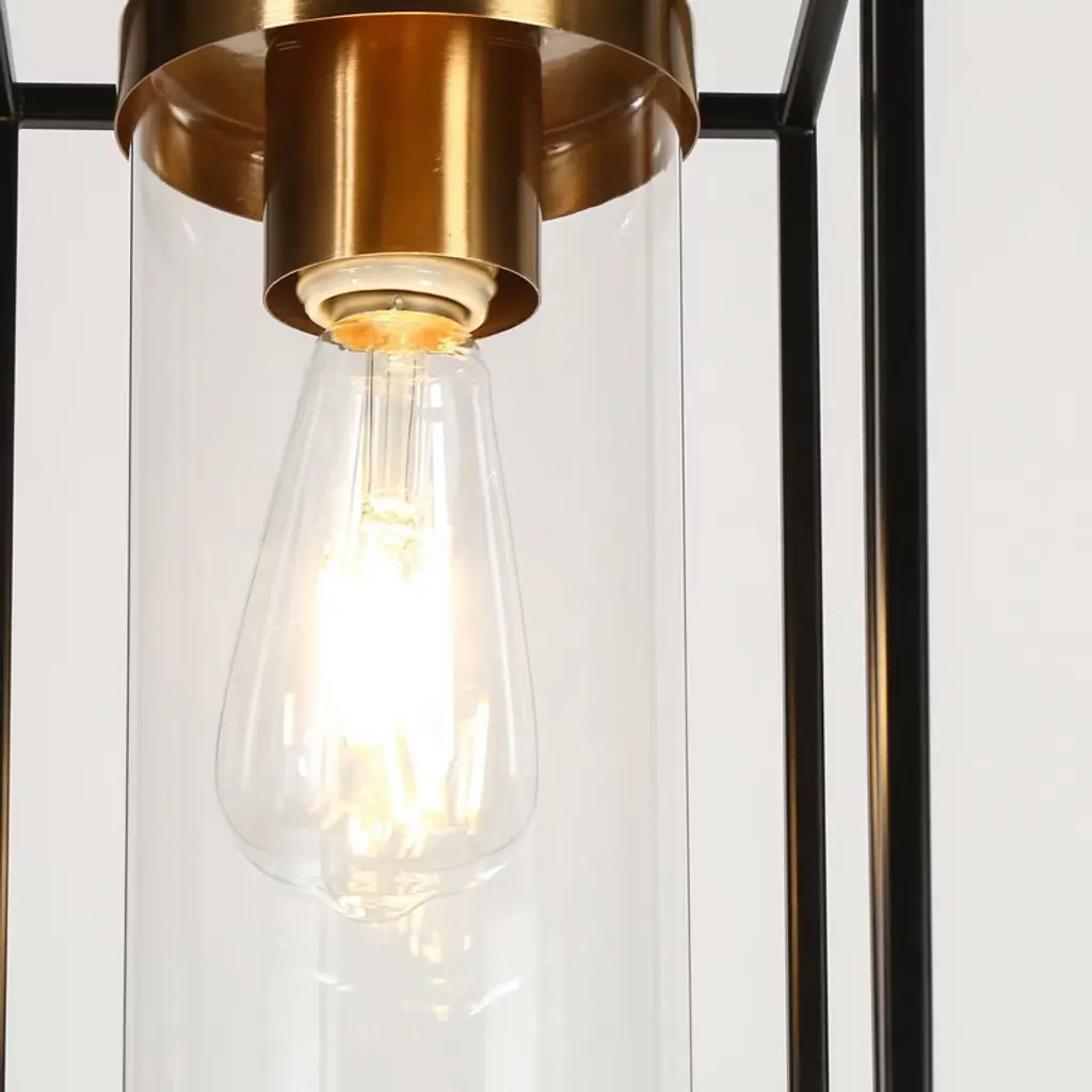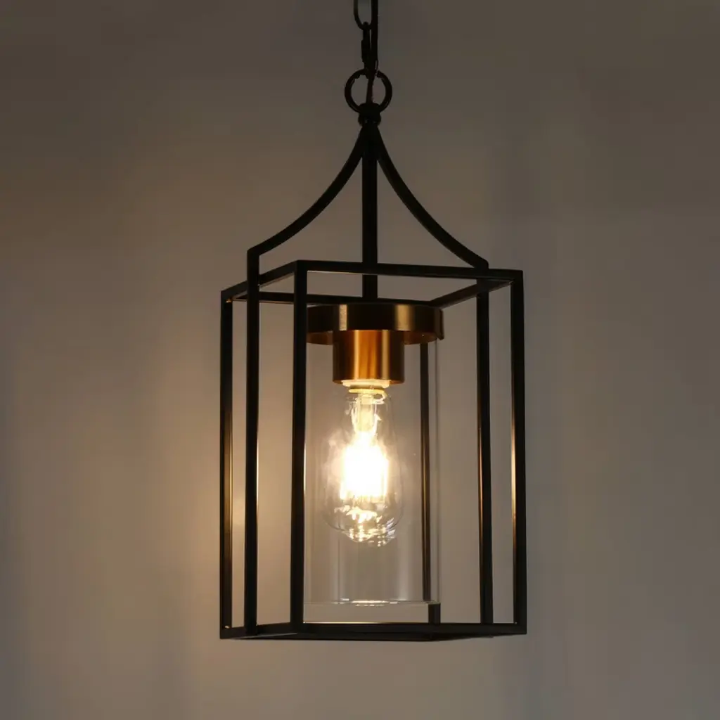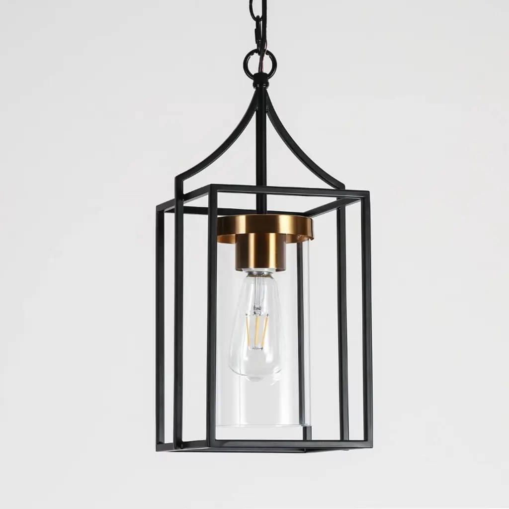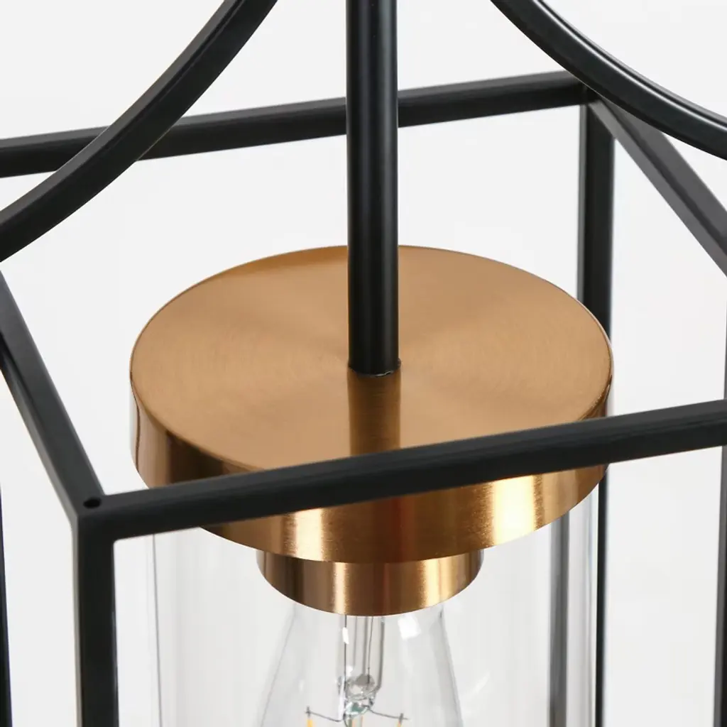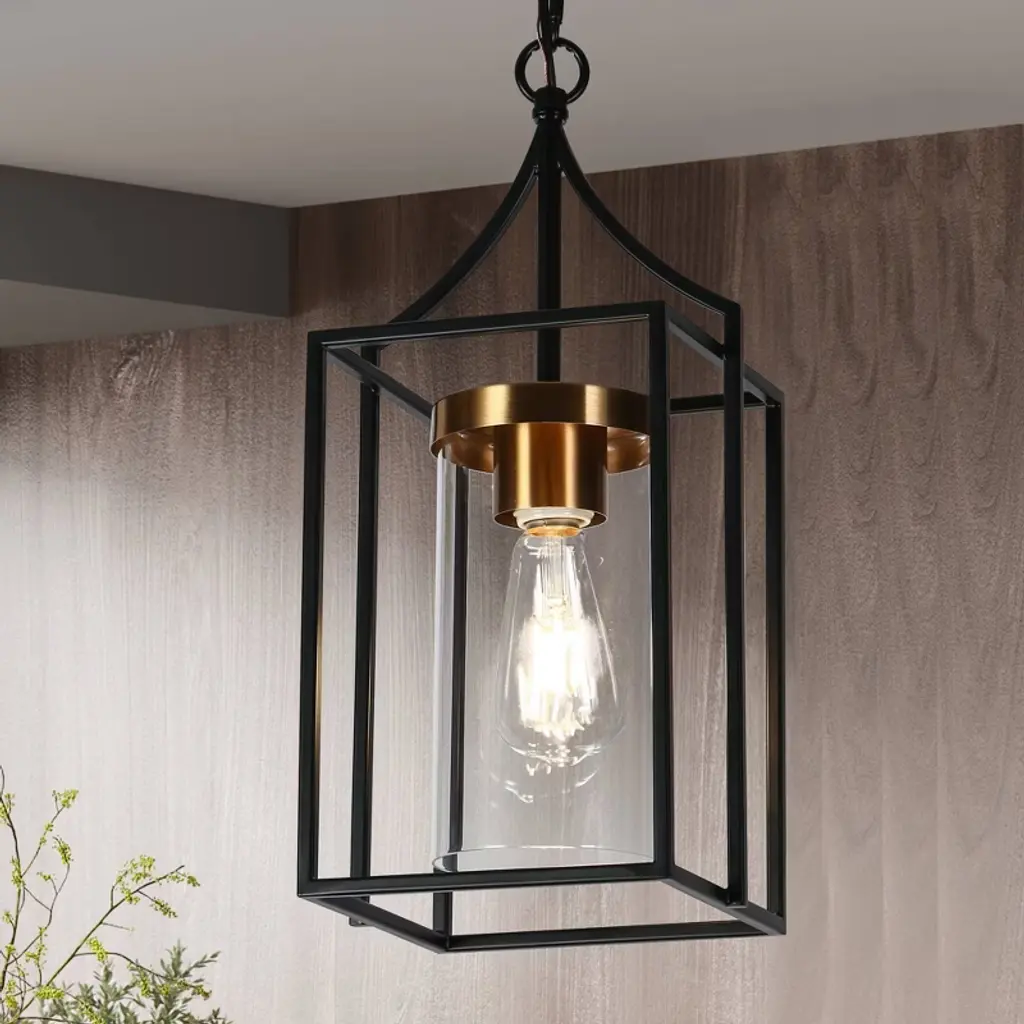 Lnc Gordios 1-light Black And Polished Gold Clear Glass Square Led Mini Hanging Kitchen Island Light: Etl Listed, Mid-century Modern Style