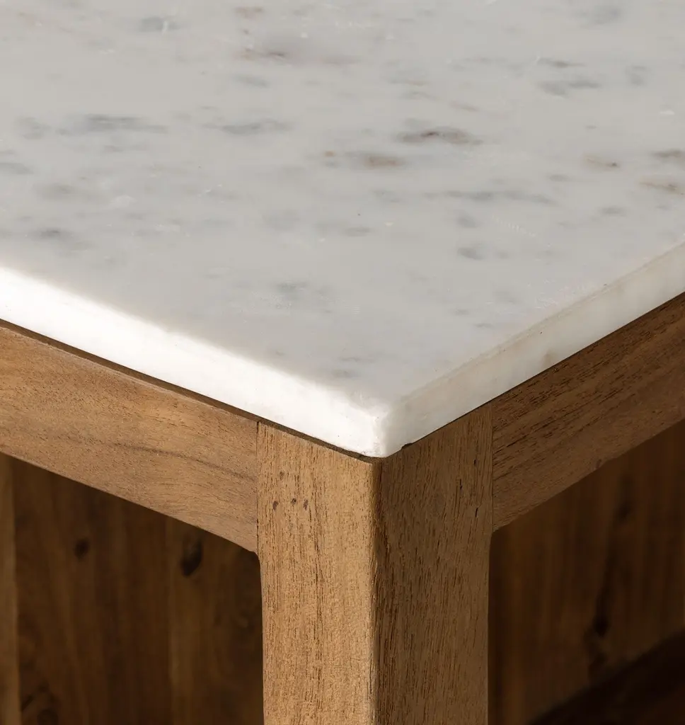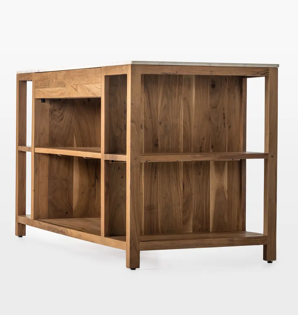 Add a functional anchor to any kitchen with our Malek Kitchen Island. Featuring a timeless design with smoked acacia wood and white Italian marble, Malek offers a versatile extra space for cooking, eating, and entertaining with built-in storage.
