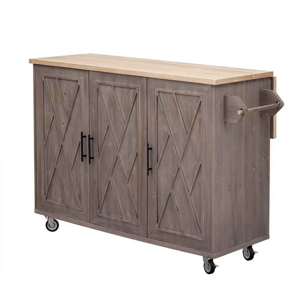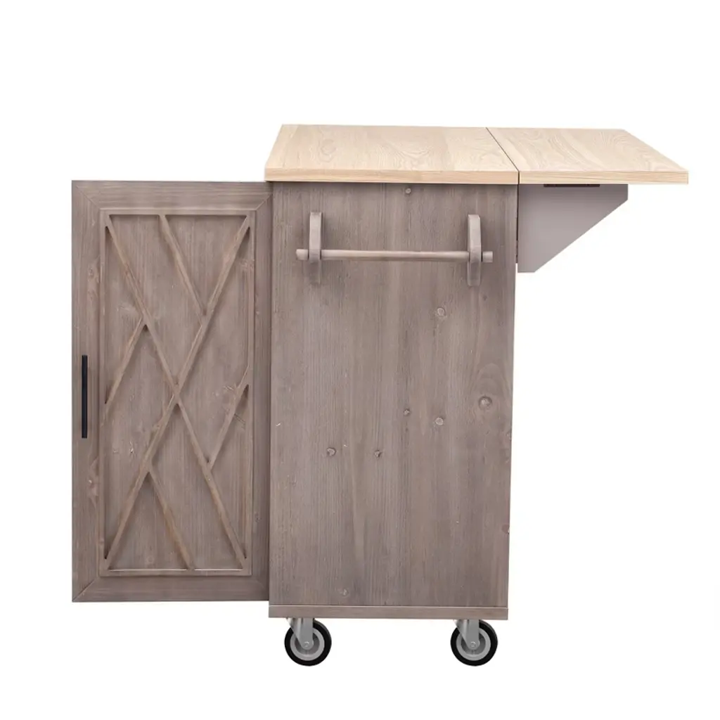 This charming farmhouse-style kitchen island blends vintage aesthetics with modern functionality, featuring a unique geometric twill-stripe textured door and a rich ASH Bark tabletop for timeless appeal. The drop-leaf countertop (47" D) expands your workspace when needed and folds neatly to save space. Inside, innovative refrigerator-style storage racks and adjustable shelves maximize organization, while the side towel rack adds convenience. Built with high-quality MDF and scratch-resistant ASH veneer, this island offers a 400 lb weight capacity and comes with 4 swivel wheels (2 lockable) or optional solid pine feet for stability.