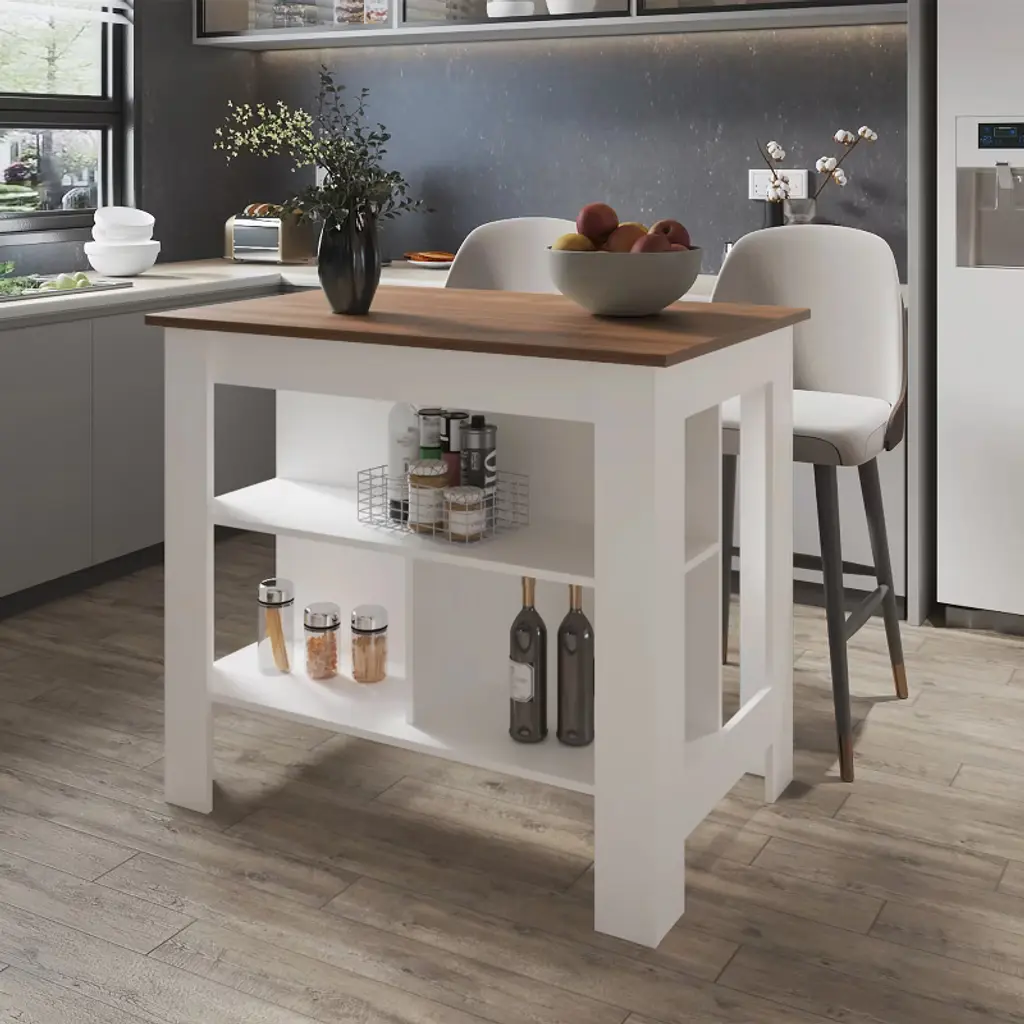 Maliang Kitchen Island With Open Storage, Brown Table Top