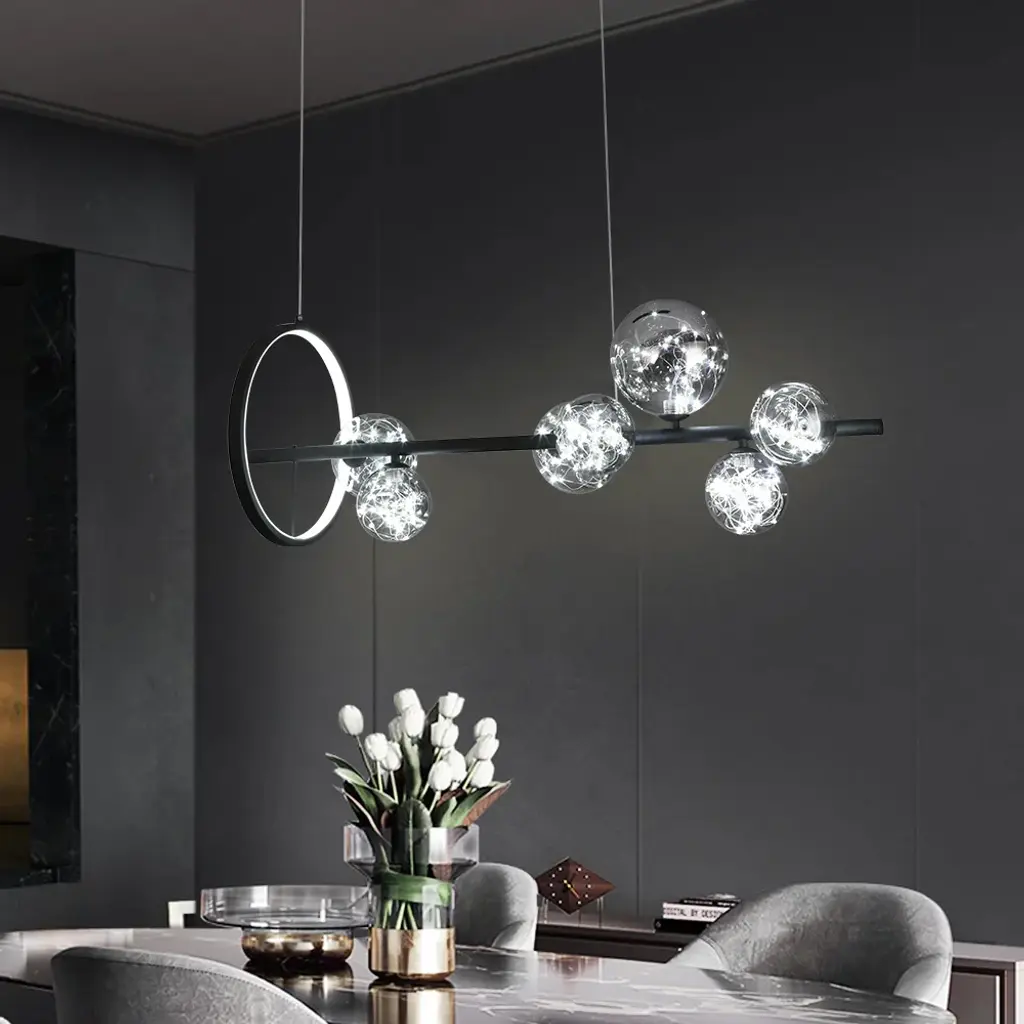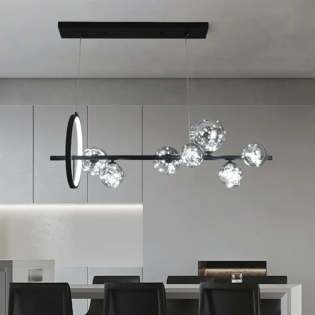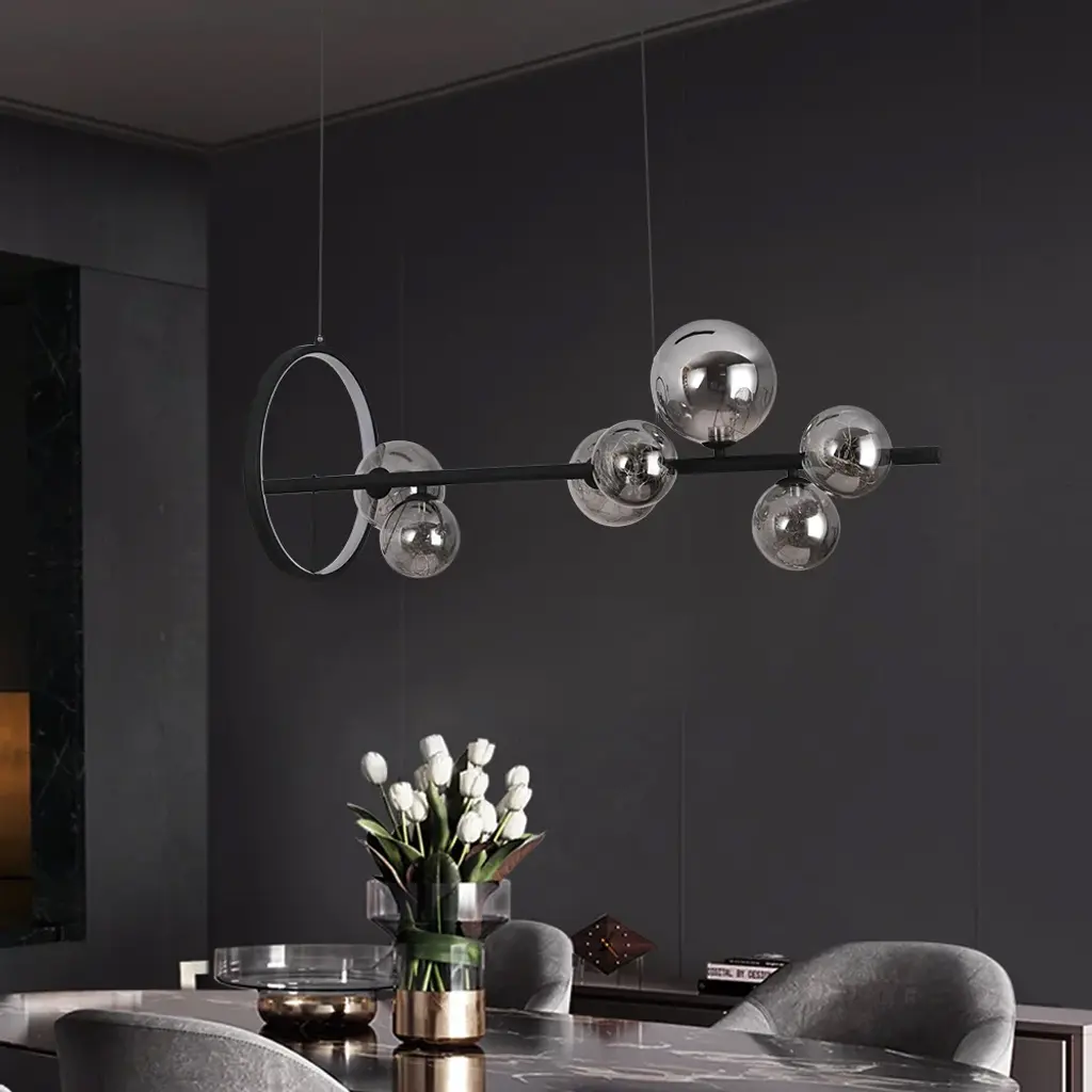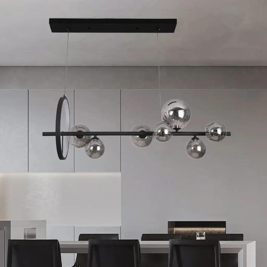 Modern 7-Light Black Kitchen Island Light With Glass Globe Shade Ceiling Pendant Lights