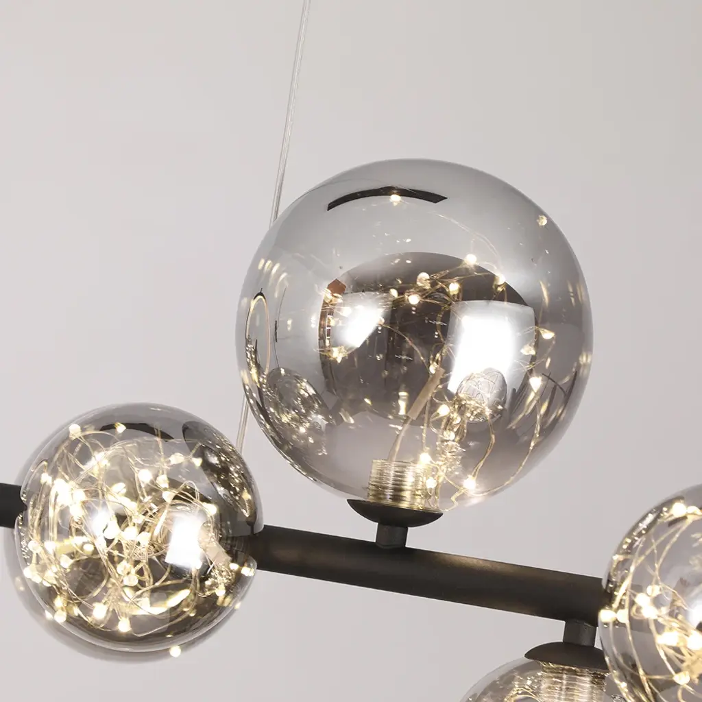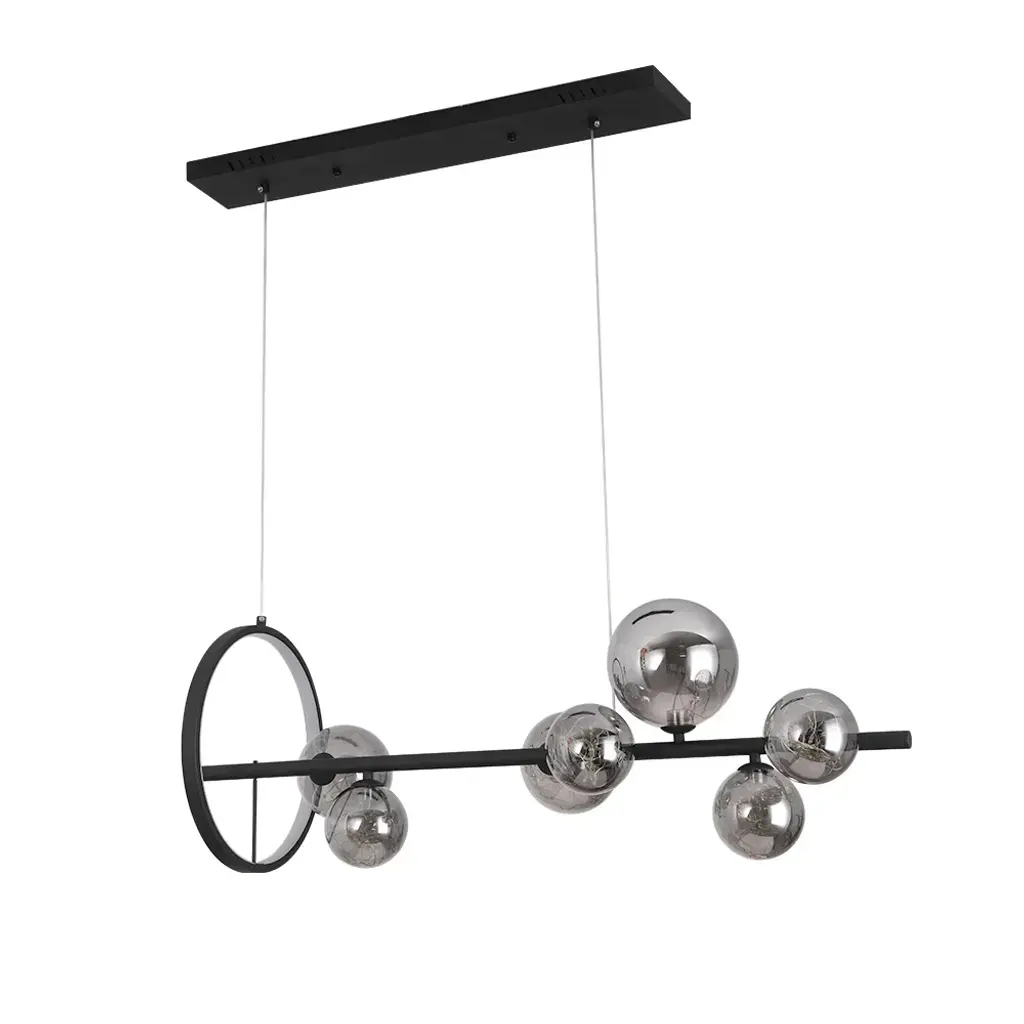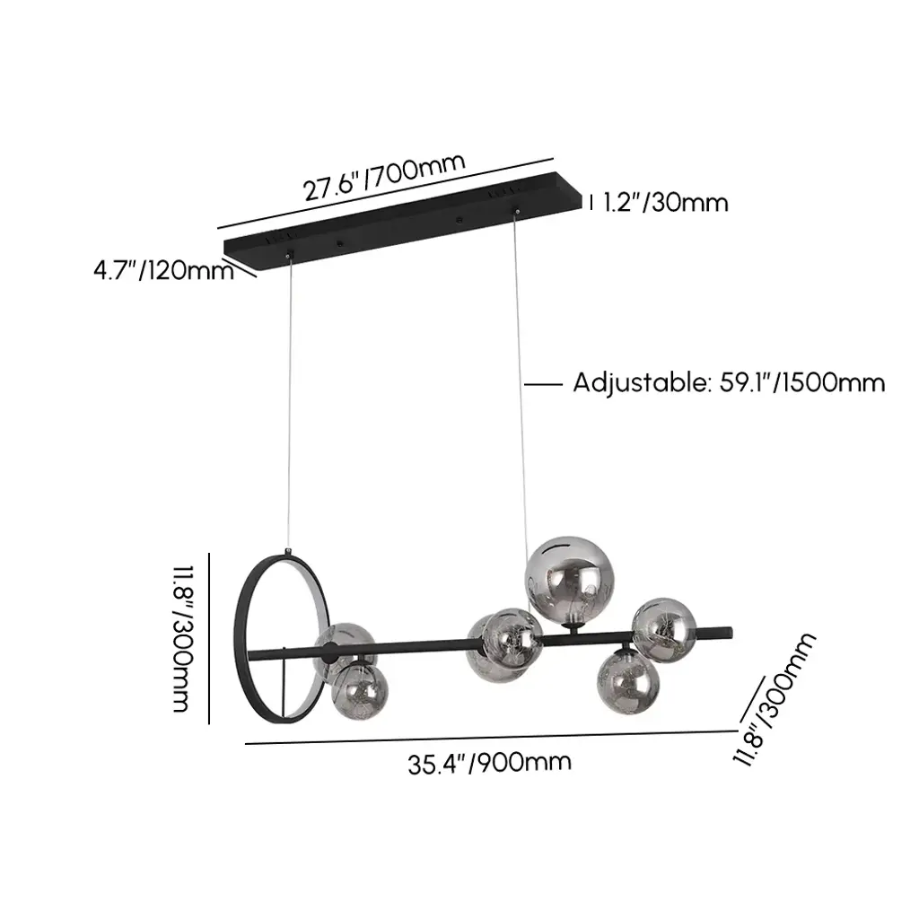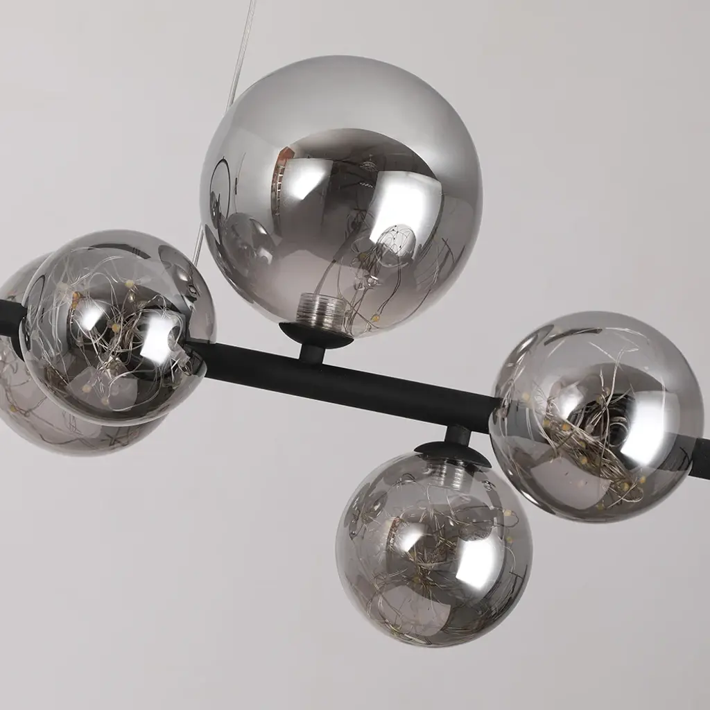 Modern 7-Light Black Kitchen Island Light With Glass Globe Shade Ceiling Pendant Lights