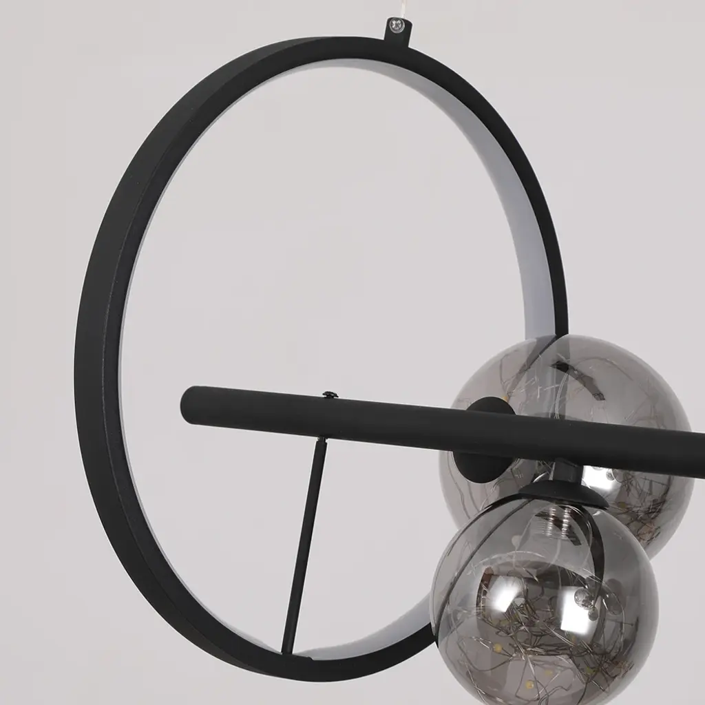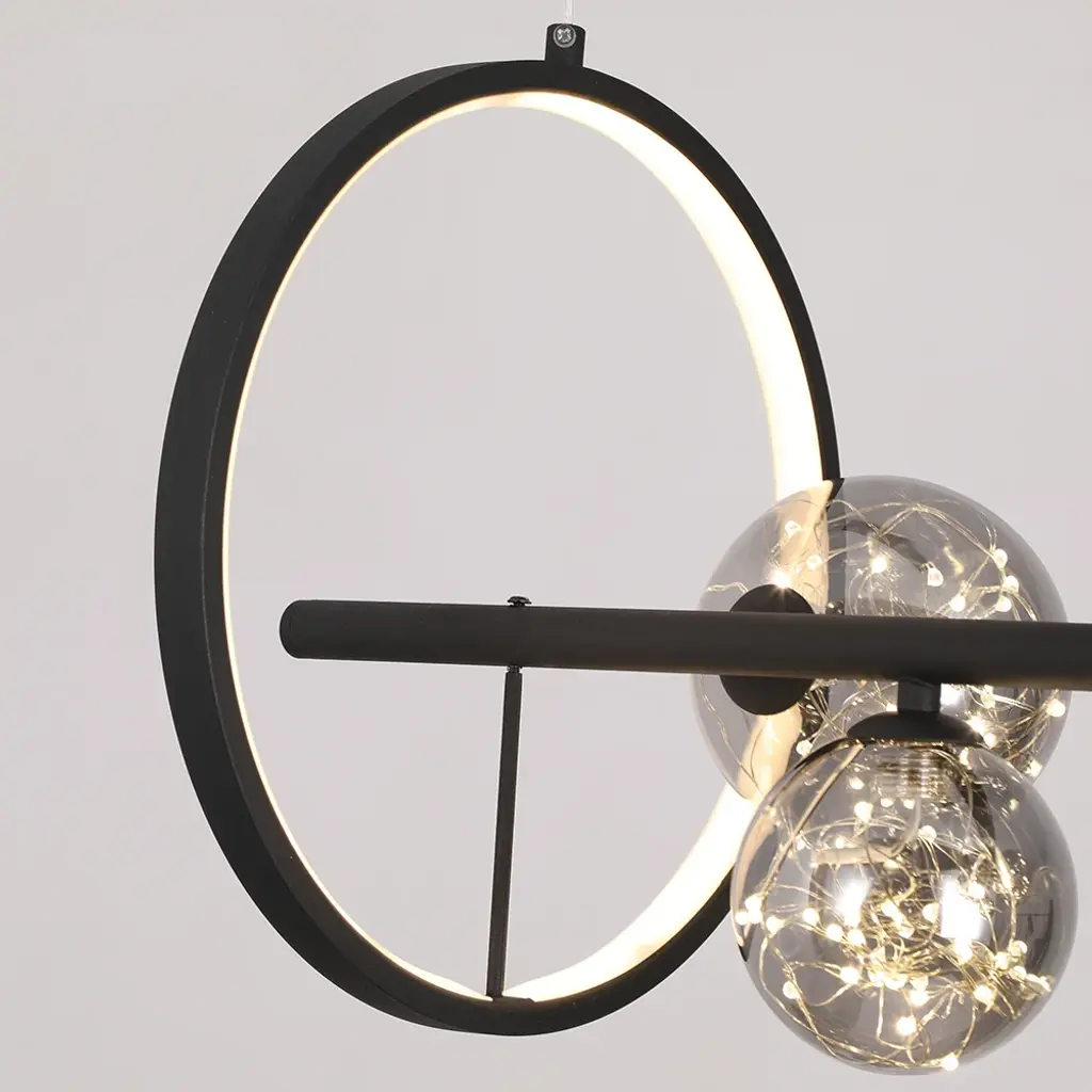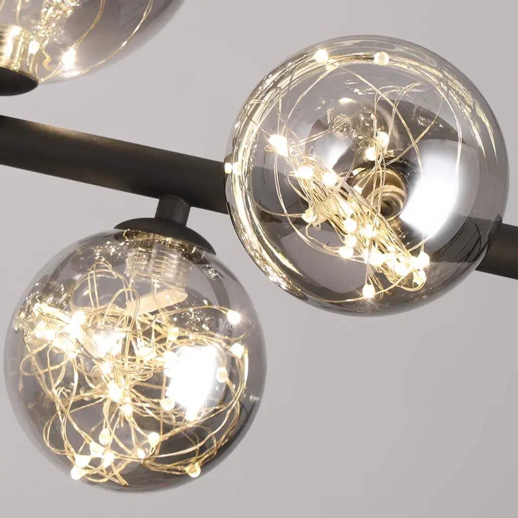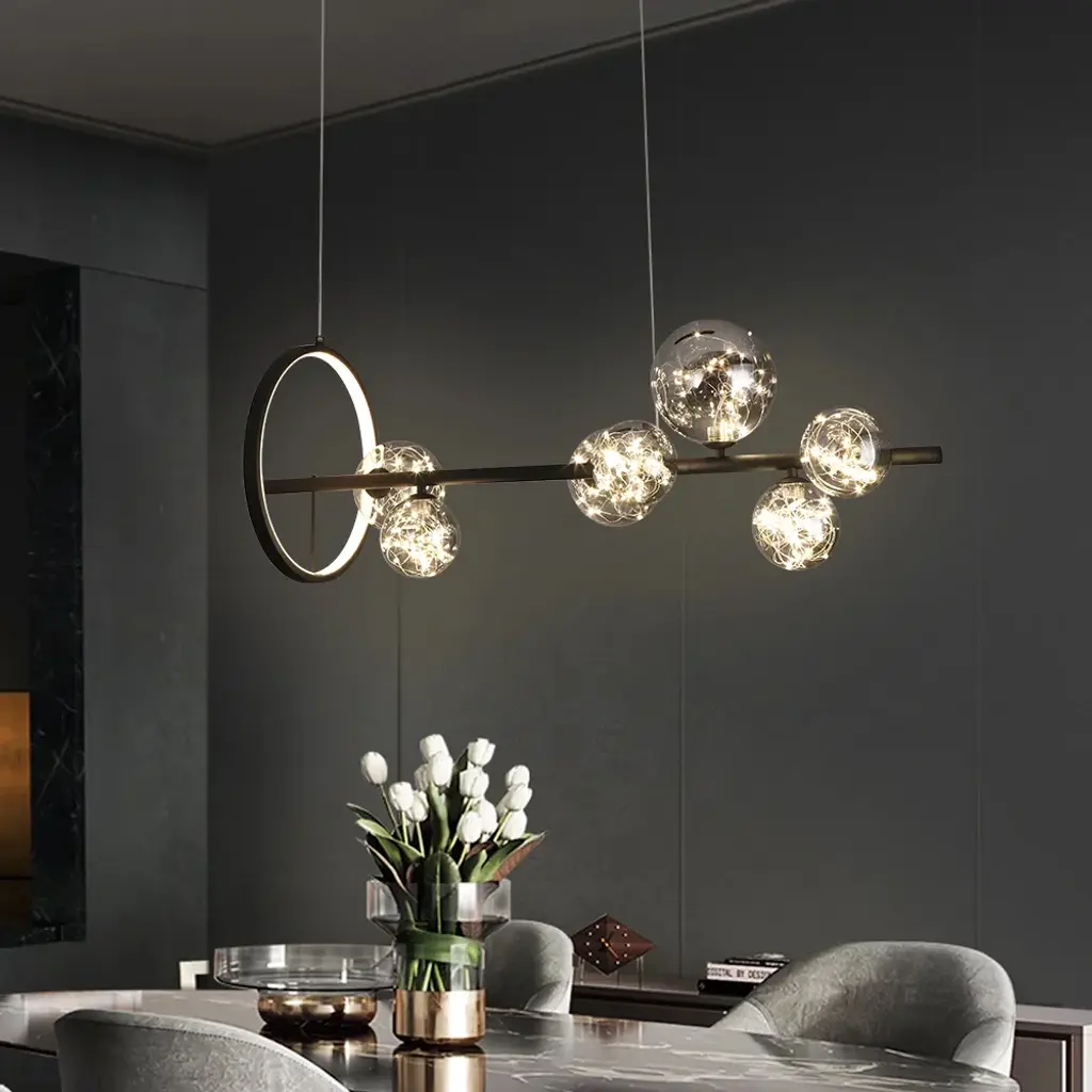 Modern 7-Light Black Kitchen Island Light With Glass Globe Shade Ceiling Pendant Lights