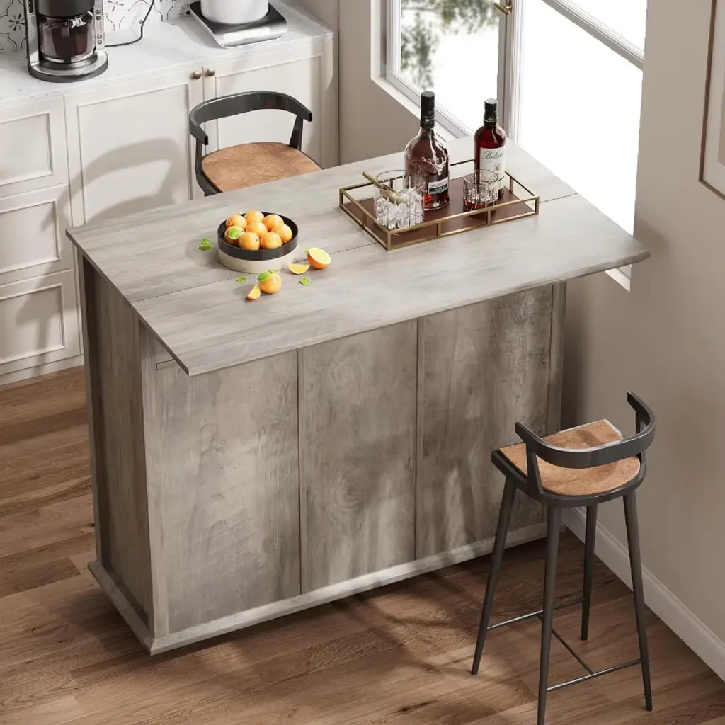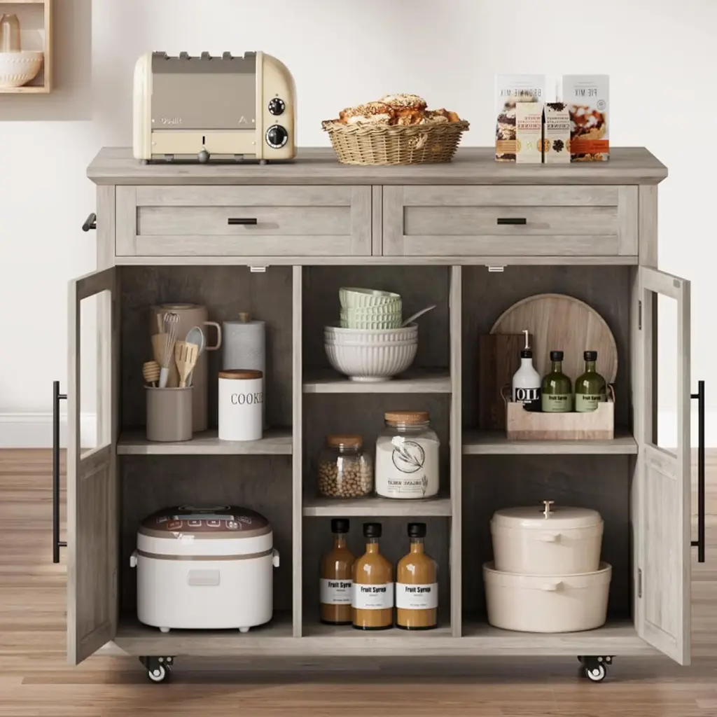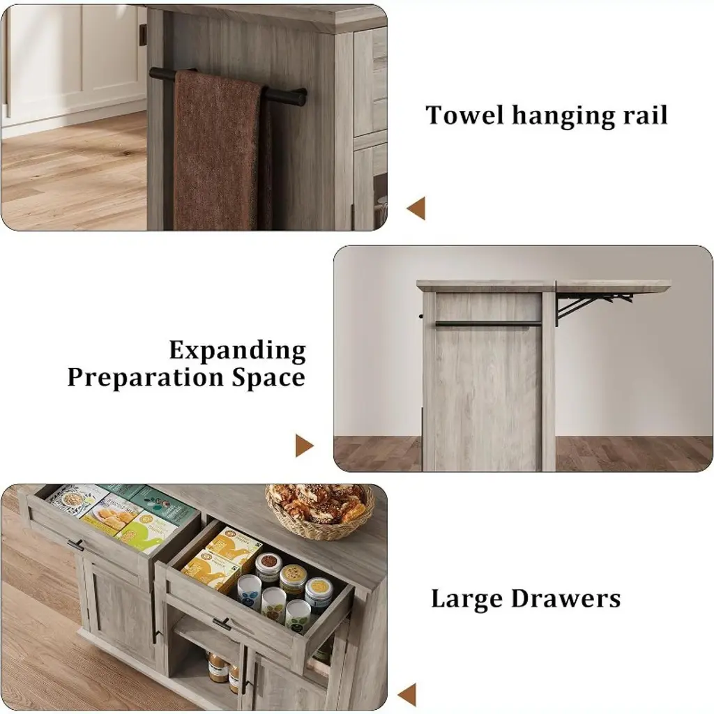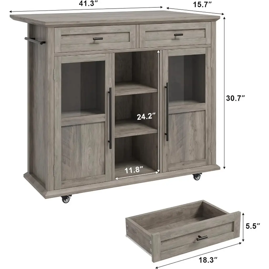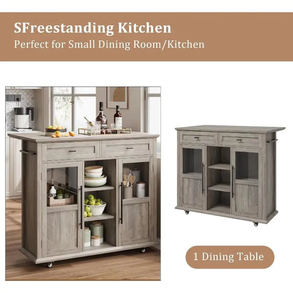 Nasitip Fold-able Kitchen Island Cart With Wheels, 2 Glass Doors, Spice Rack & Towel Holder,gray